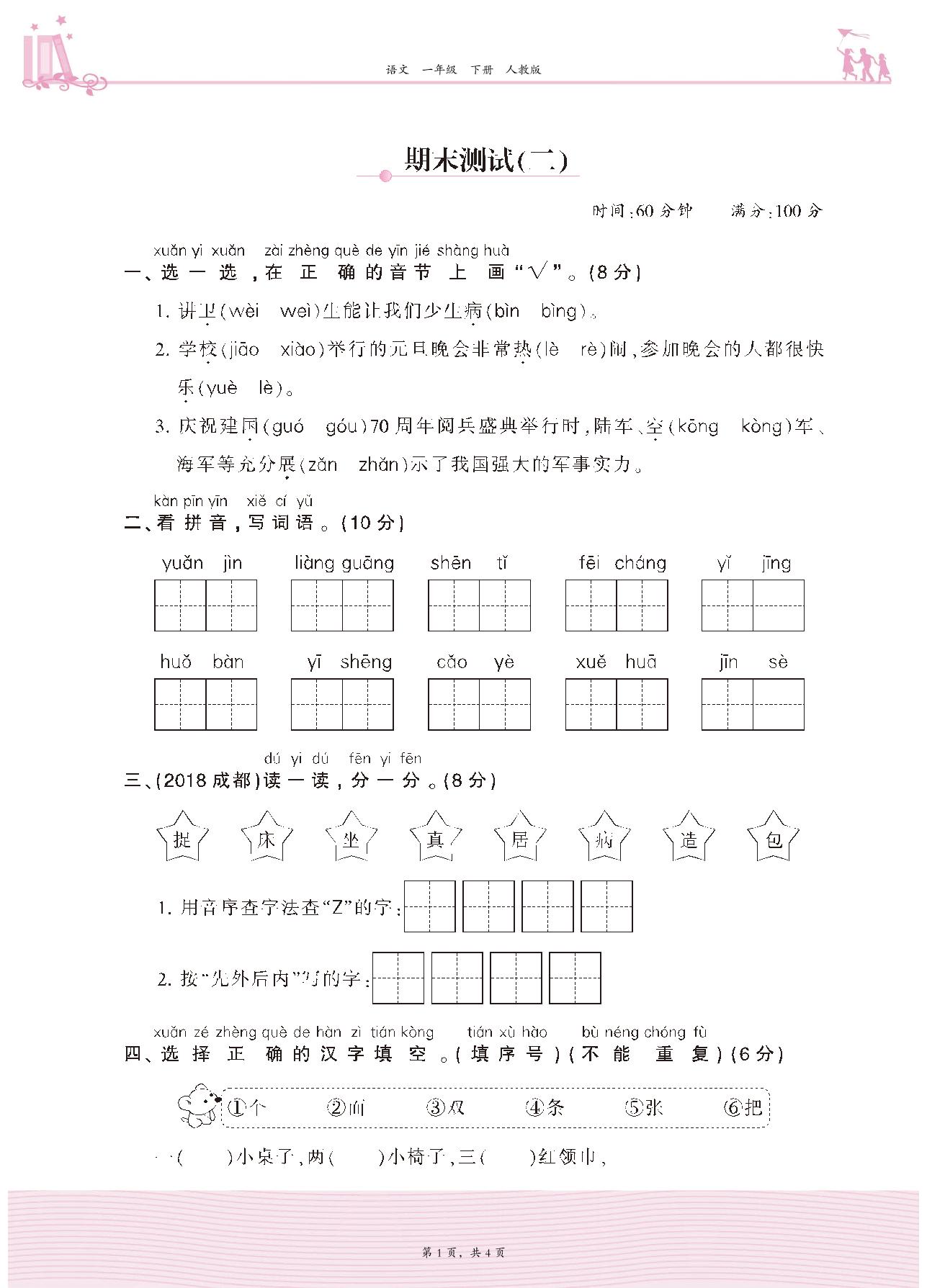 一年级语文人教版下册期末卷