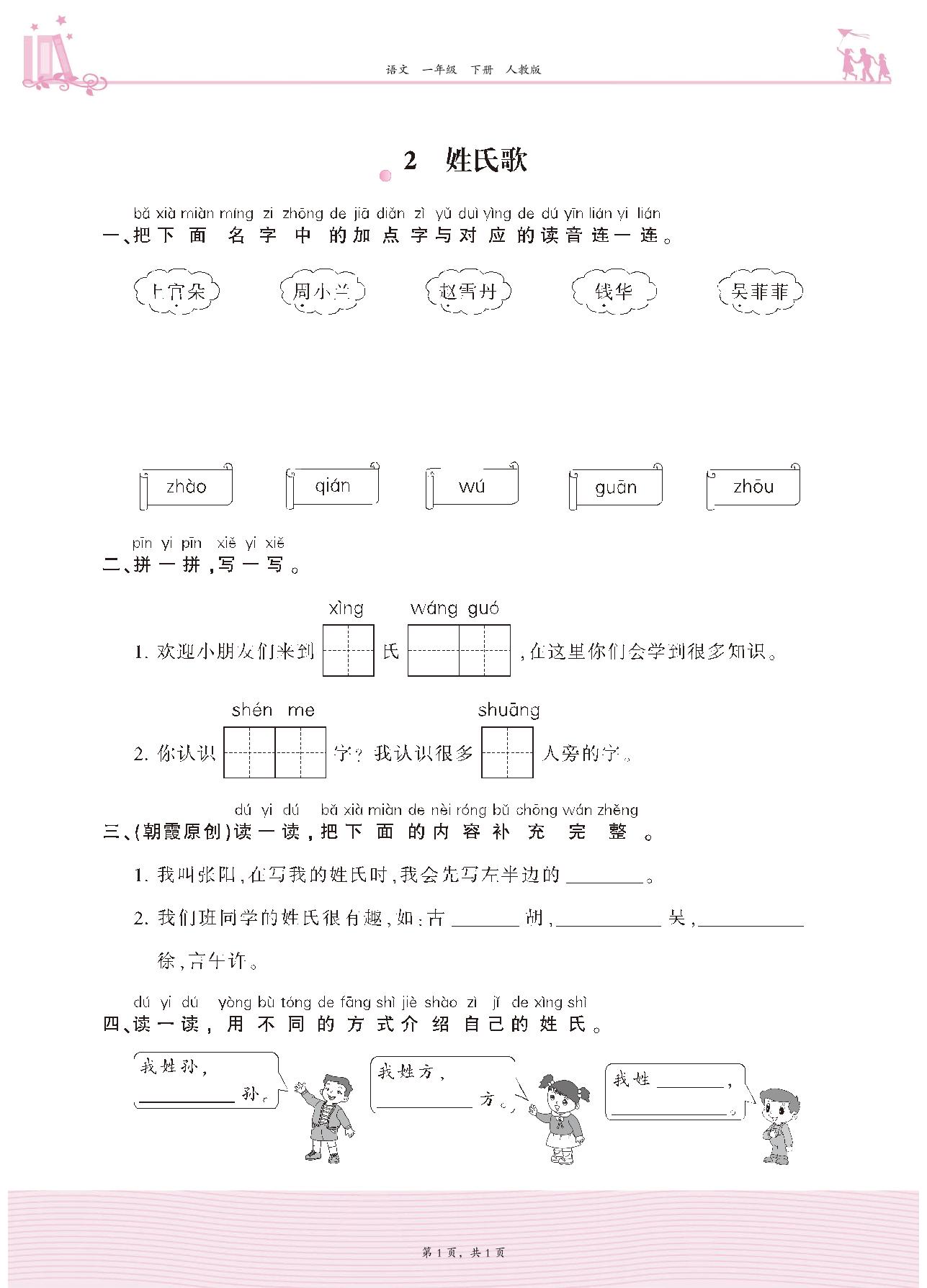 2021下册一年级语文人教版 第一单元 识字——2 姓氏歌