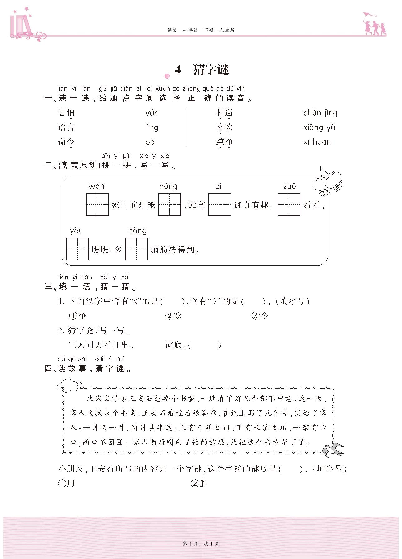 2021下册一年级语文人教版 第一单元 识字——4 猜字谜