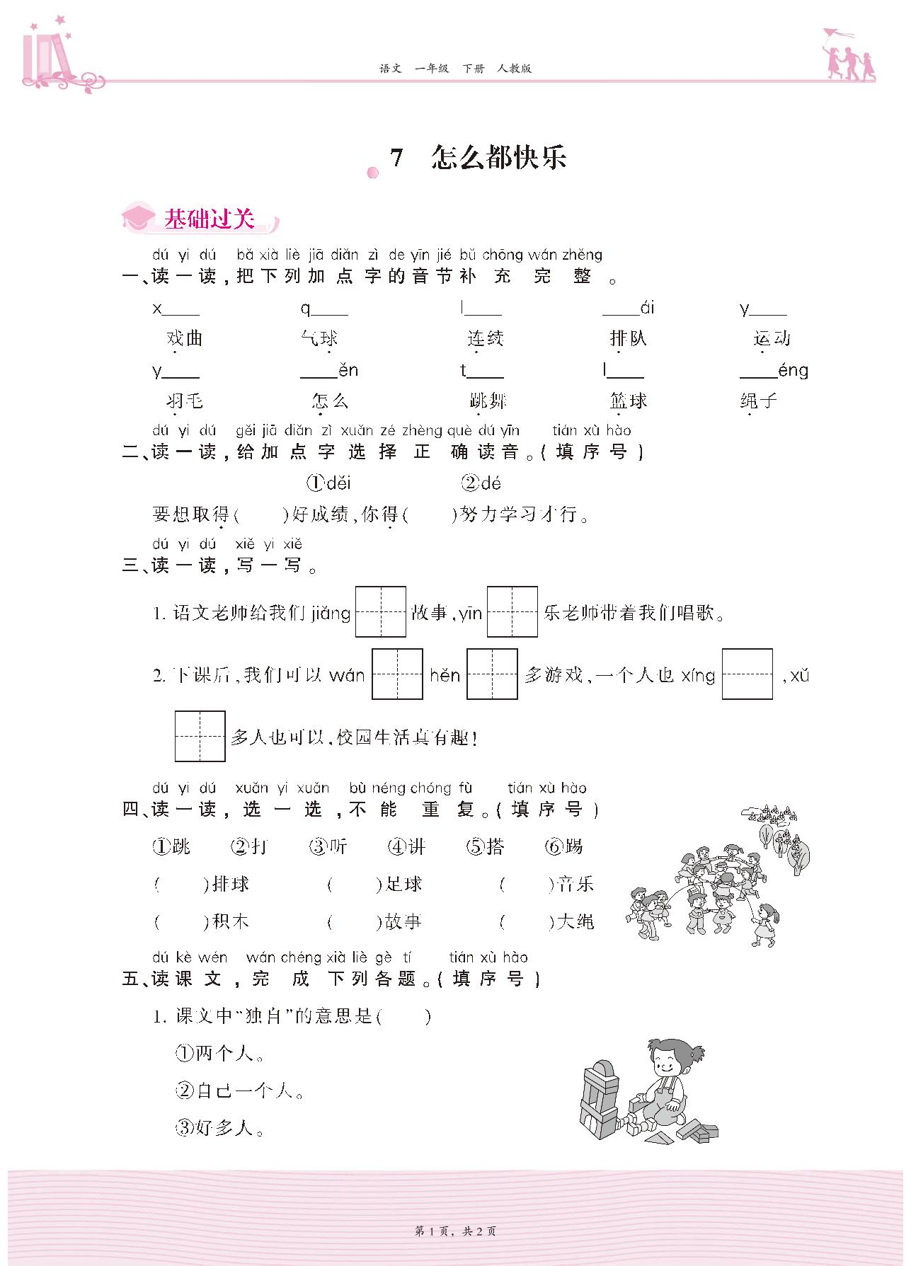 2021下册一年级语文人教版 第三单元 课文——7 怎么都快乐