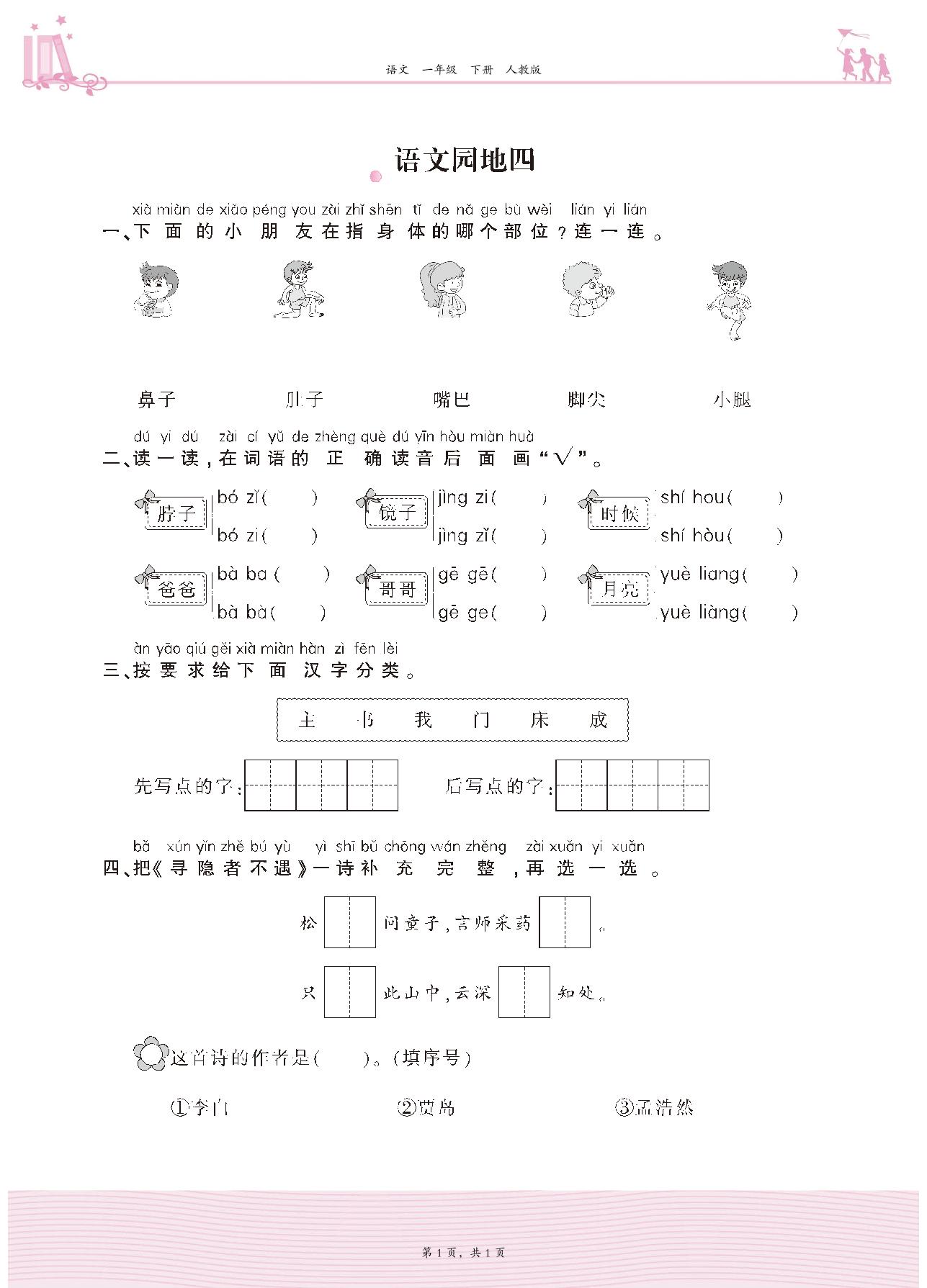 一年级语文人教版下册单元卷