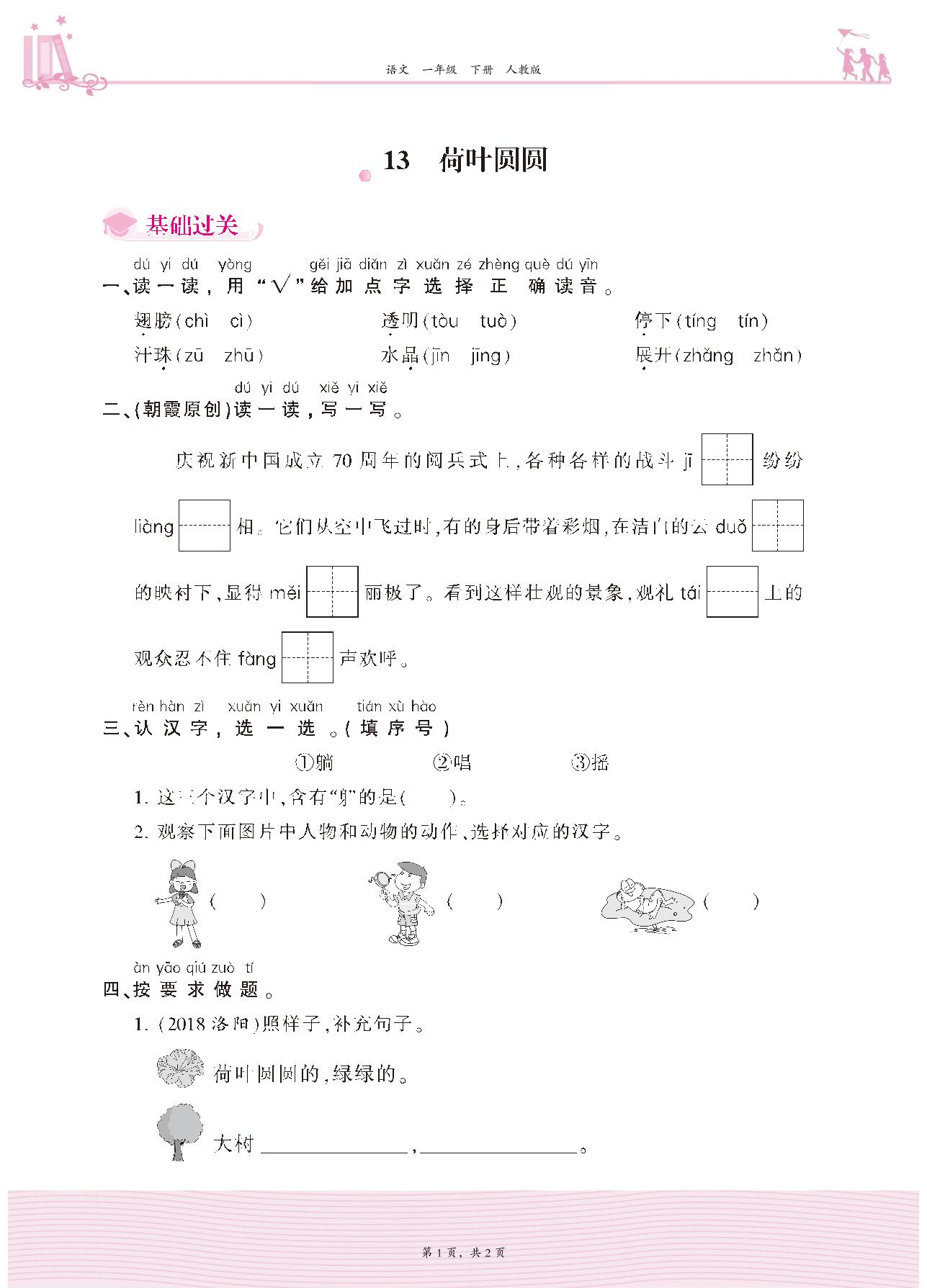 2021下册一年级语文人教版 第六单元 课文——13 荷叶圆圆
