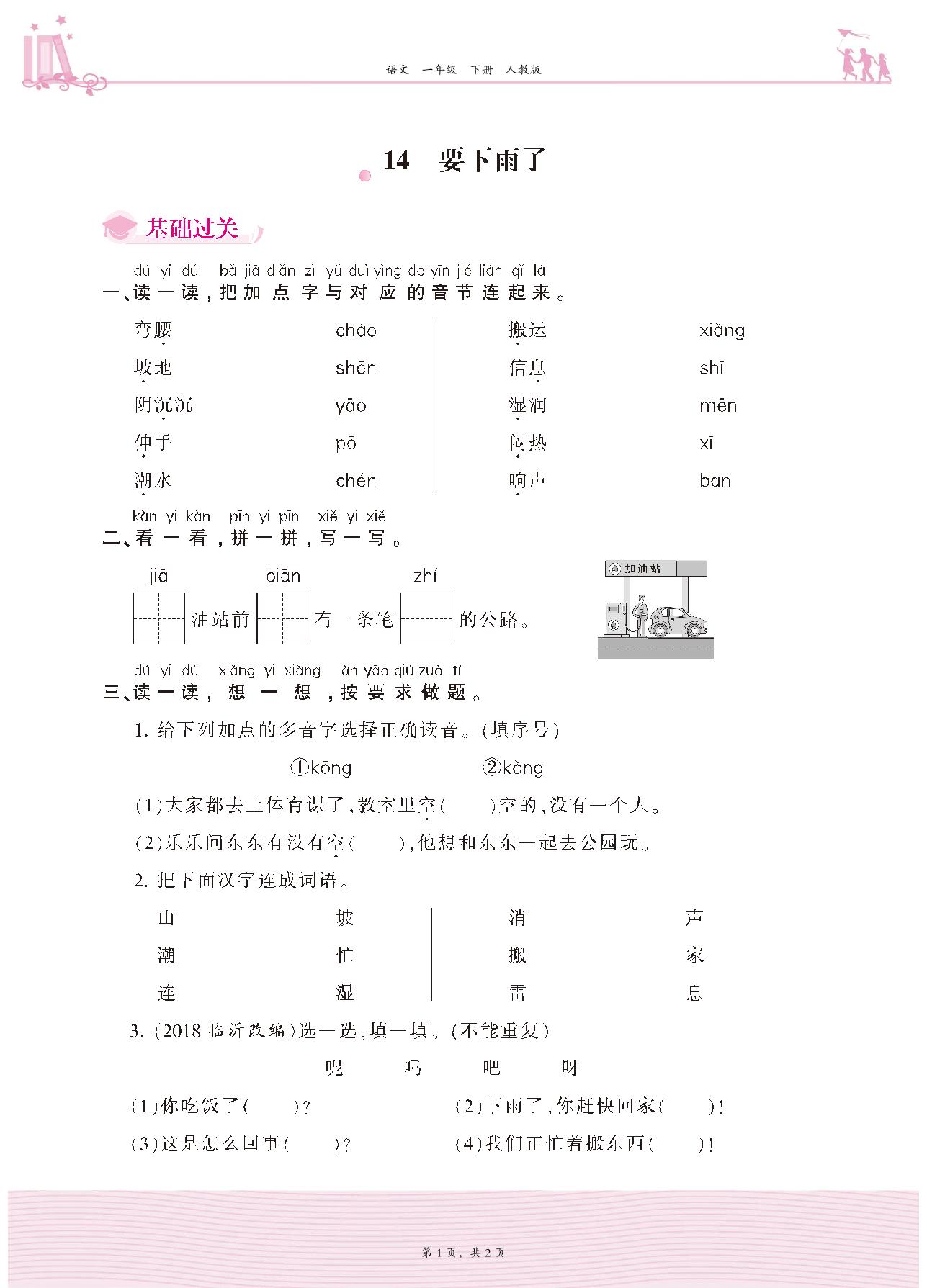 2021下册一年级语文人教版 第六单元 课文——14 要下雨了