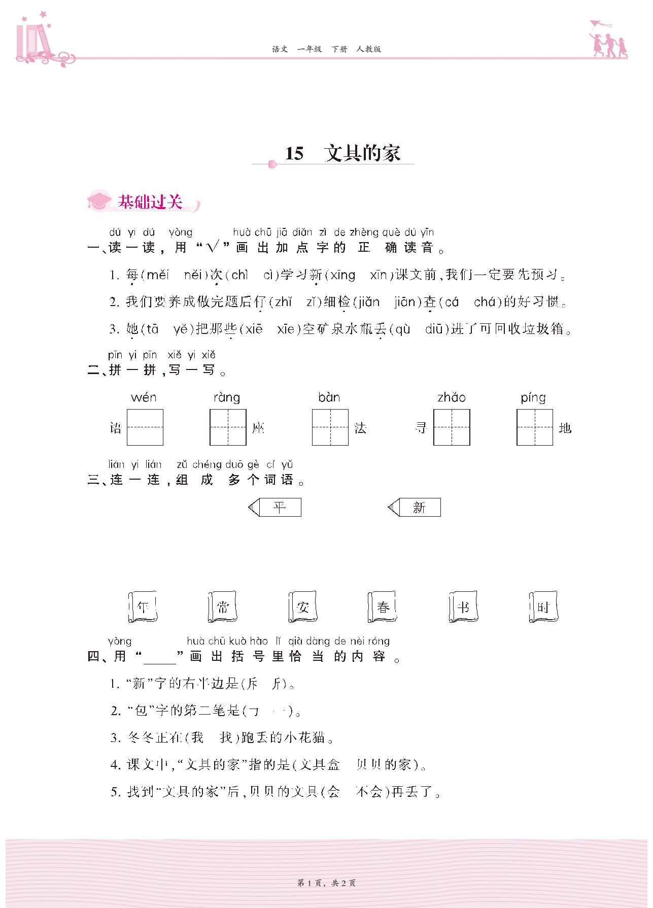 2021下册一年级语文人教版 第七单元 课文——15 文具的家