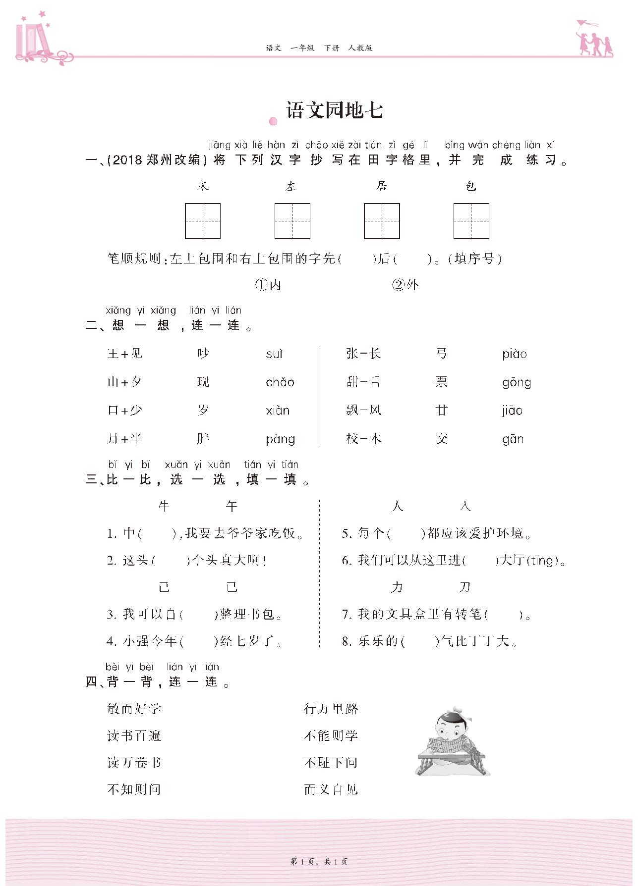 2021下册一年级语文人教版 第七单元 课文——语文园地七