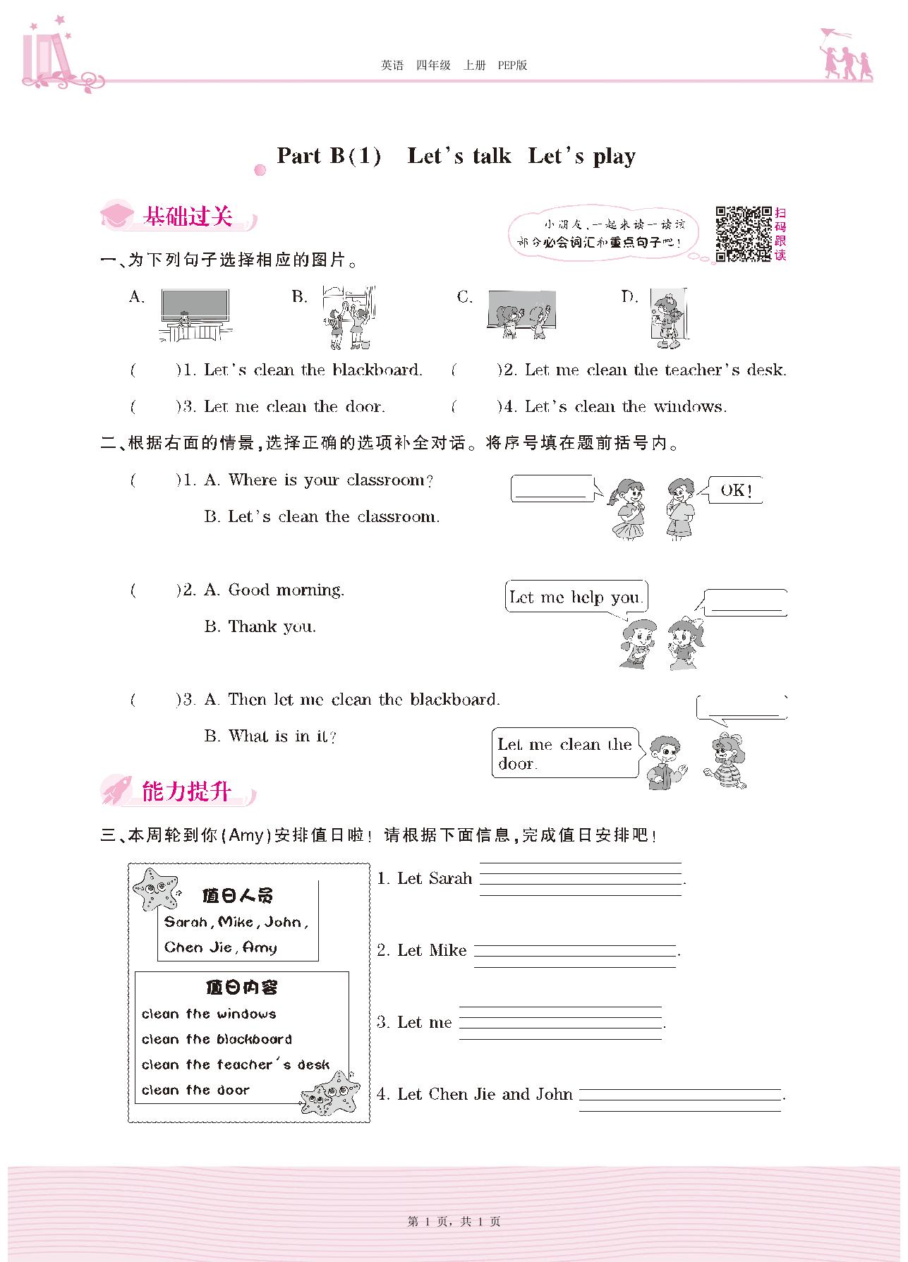 2020上册四年级英语人教PEP版 Unit 1—Part B(1) Let’s talk Let’s play