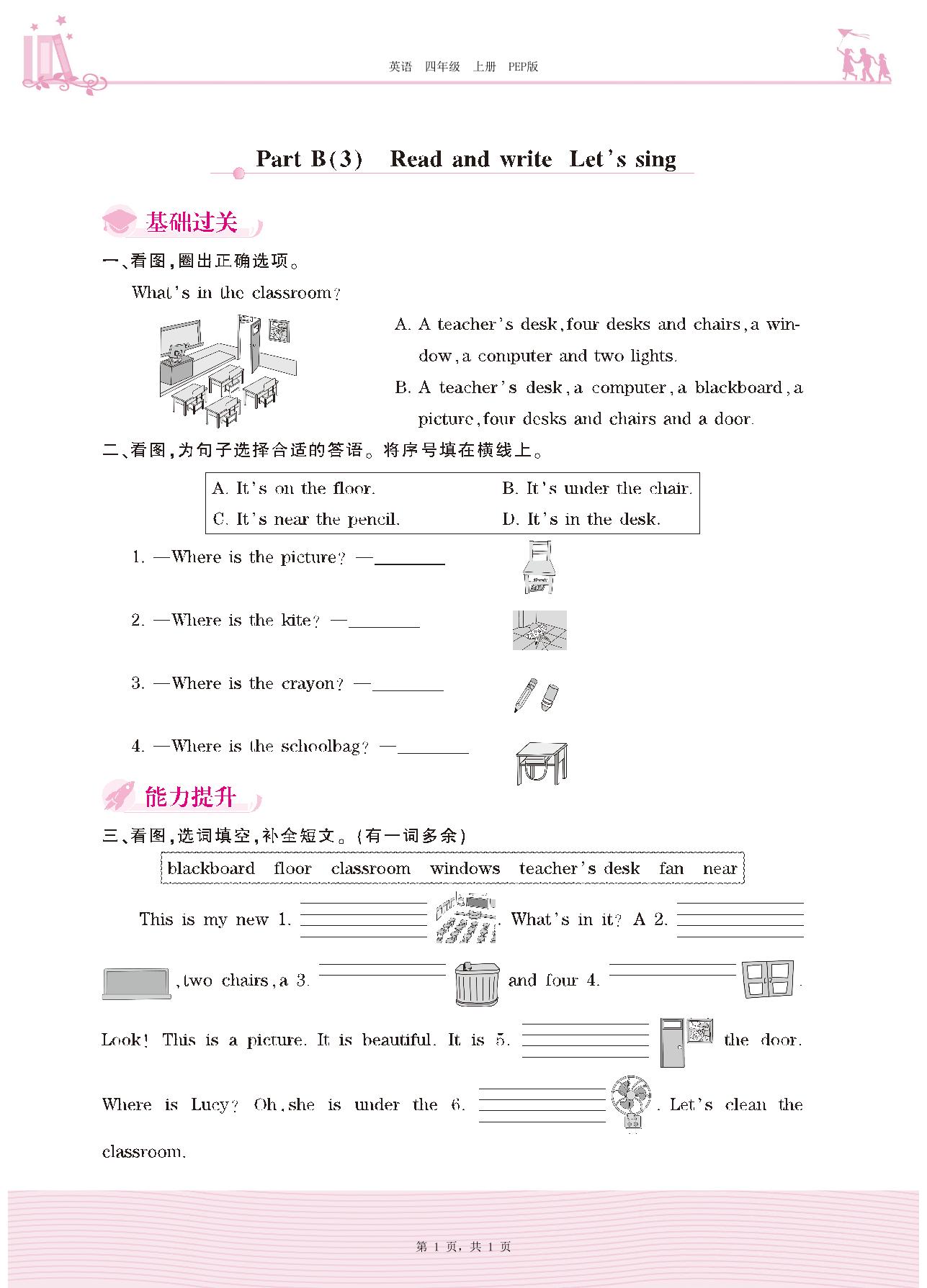 2020上册四年级英语人教PEP版 Unit 1—Part B(3) Read and write Let’s sing