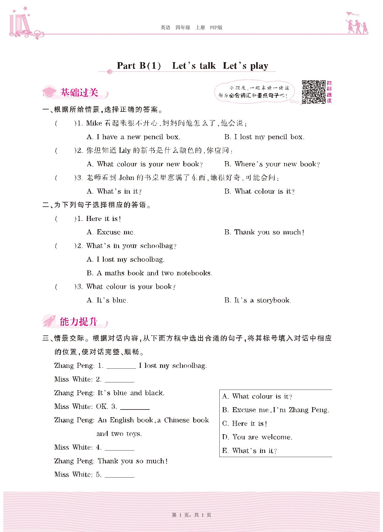 2020上册四年级英语人教PEP版 Unit 2—Part B(1) Let’s talk Let’s play
