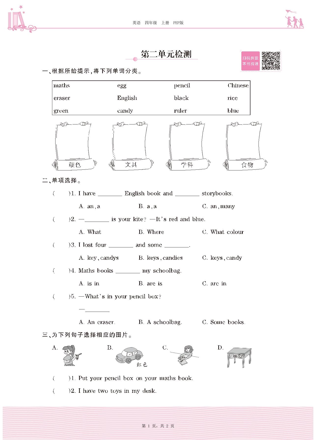 四年级英语人教PEP版(三起始)上册单元卷