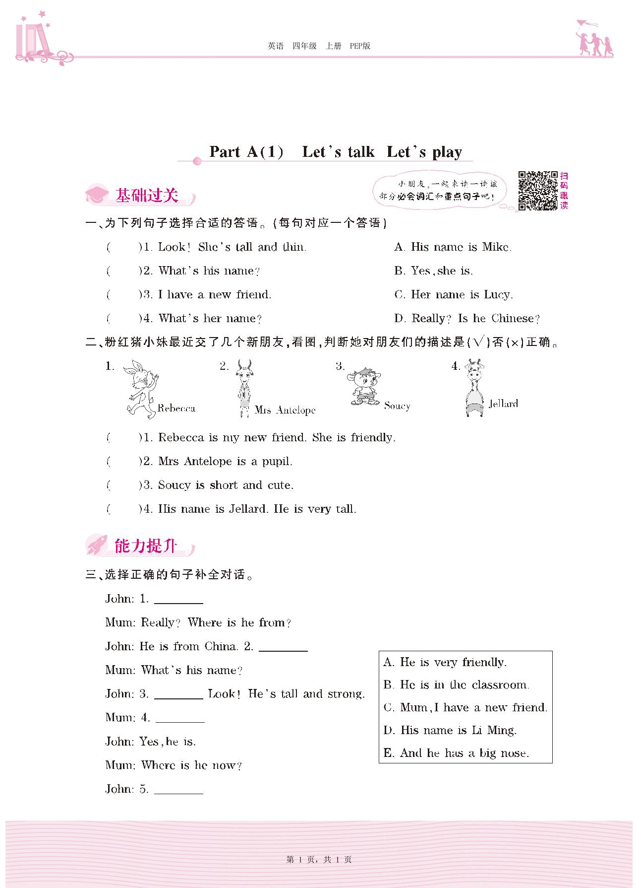 2020上册四年级英语人教PEP版 Unit 3—Part A(1) Let’s talk Let’s play