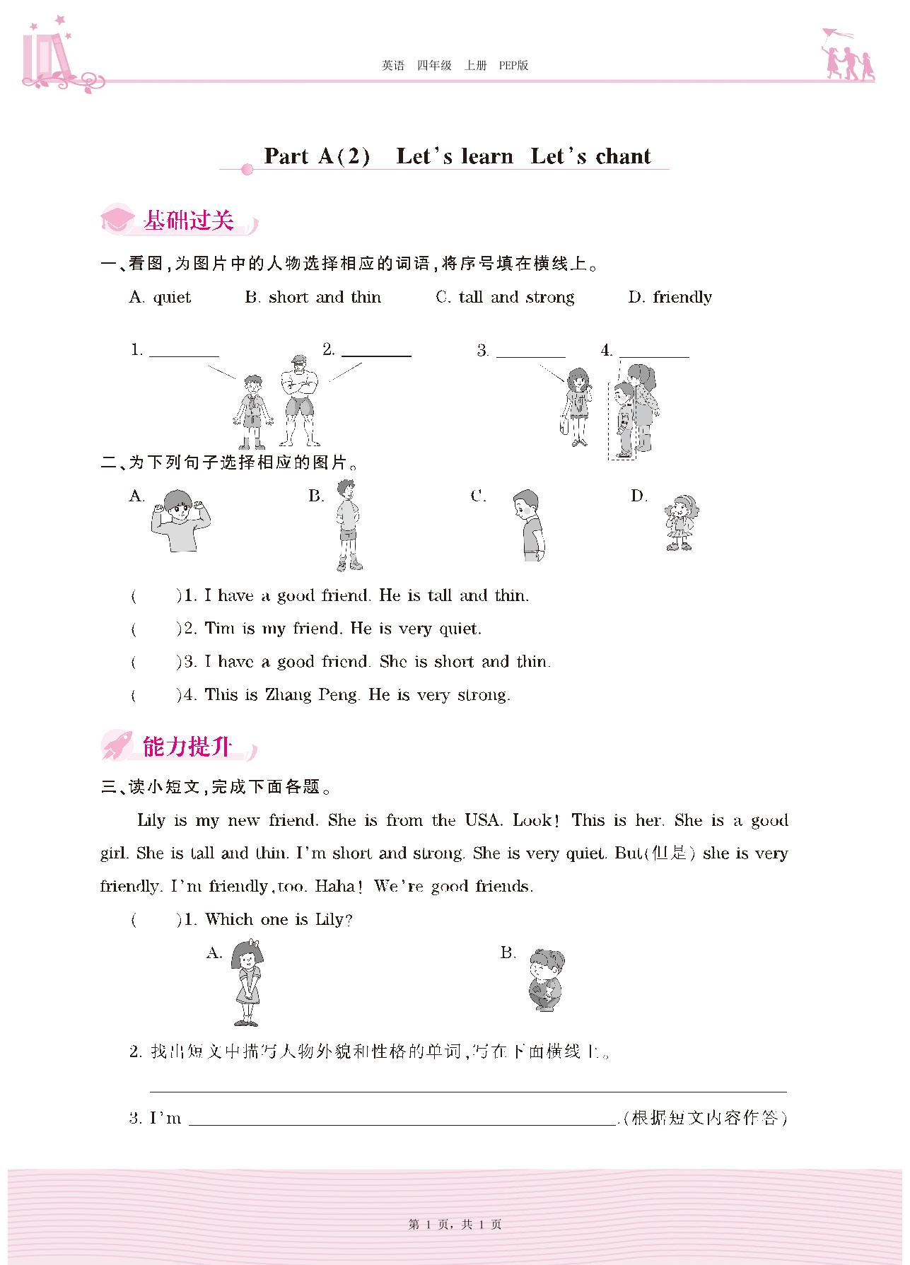 2020上册四年级英语人教PEP版 Unit 3—Part A(2) Let’s learn Let’s chant