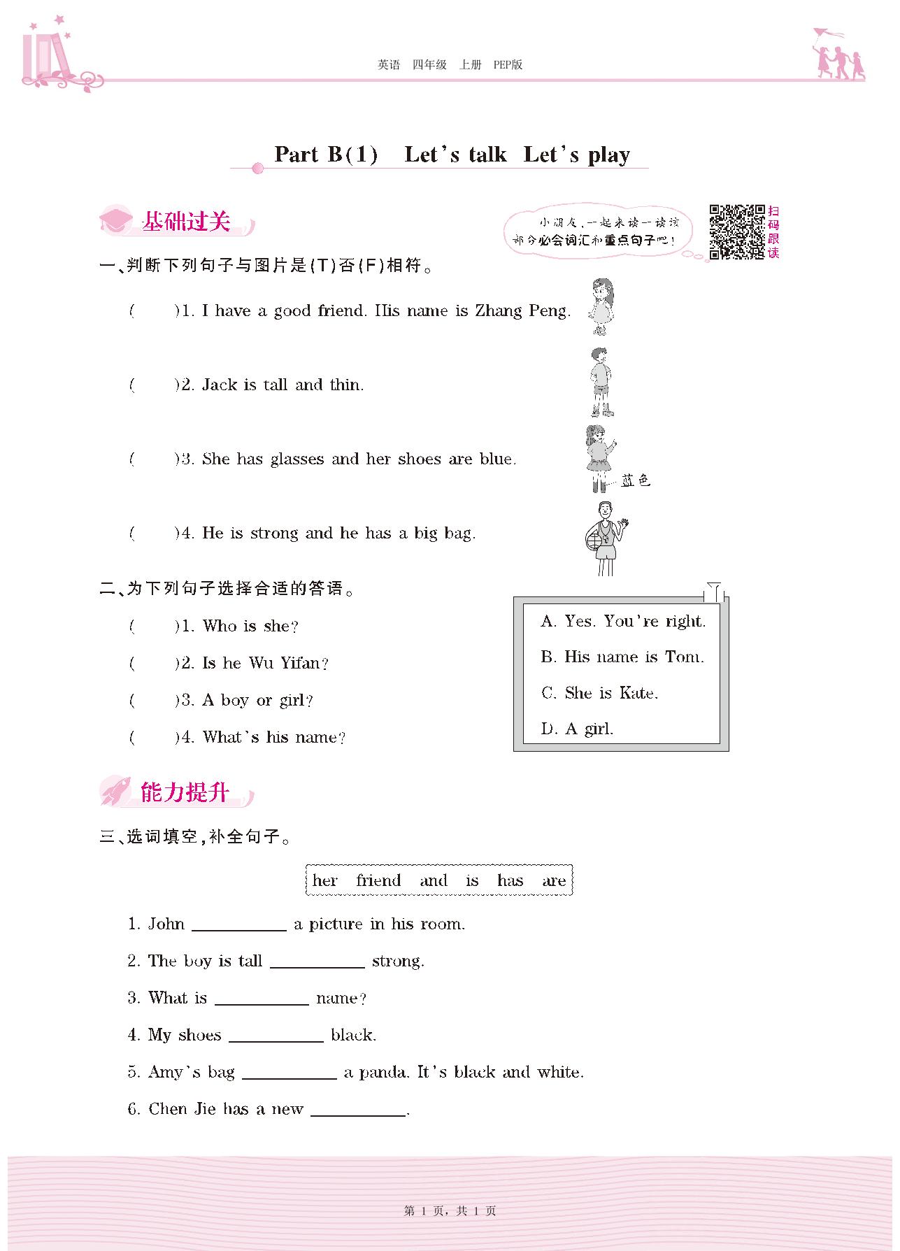 2020上册四年级英语人教PEP版 Unit 3—Part B(1) Let’s talk Let’s play