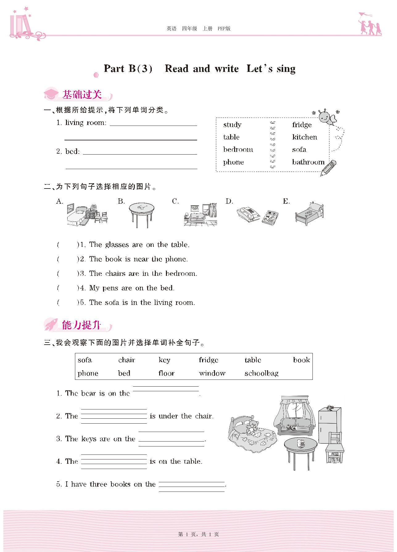 2020上册四年级英语人教PEP版 Unit 4—Part B(3) Read and write Let’s sing