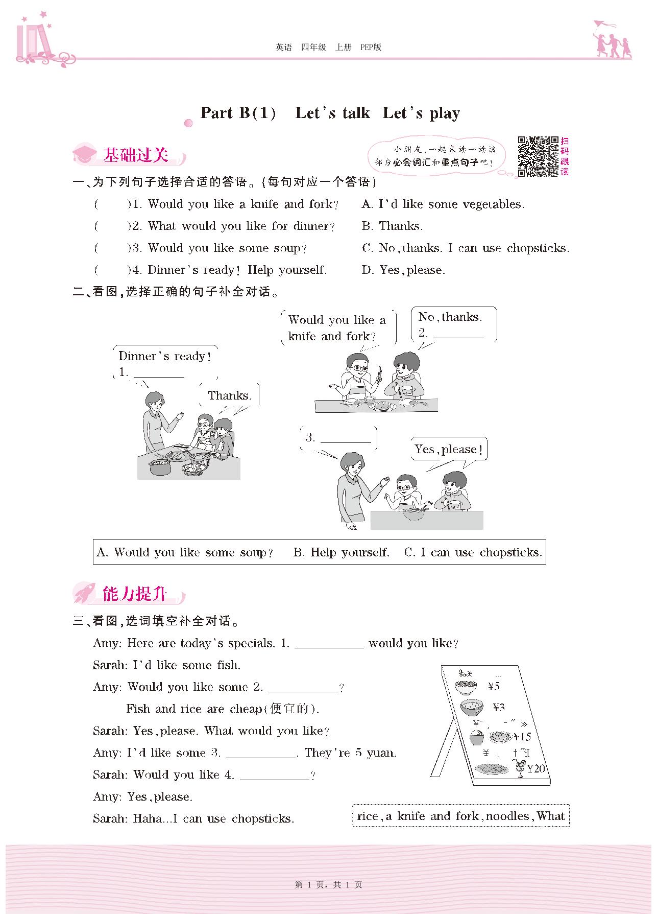 2020上册四年级英语人教PEP版 Unit 5—Part B(1) Let’s talk Let’s play