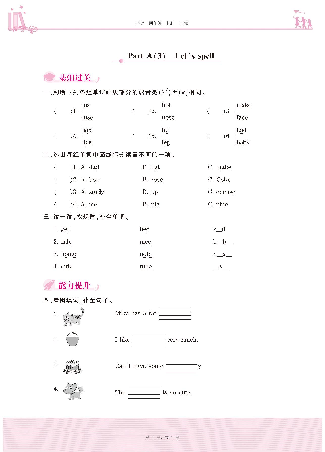 2020上册四年级英语人教PEP版 Unit 6—Part A(3) Let’s spell