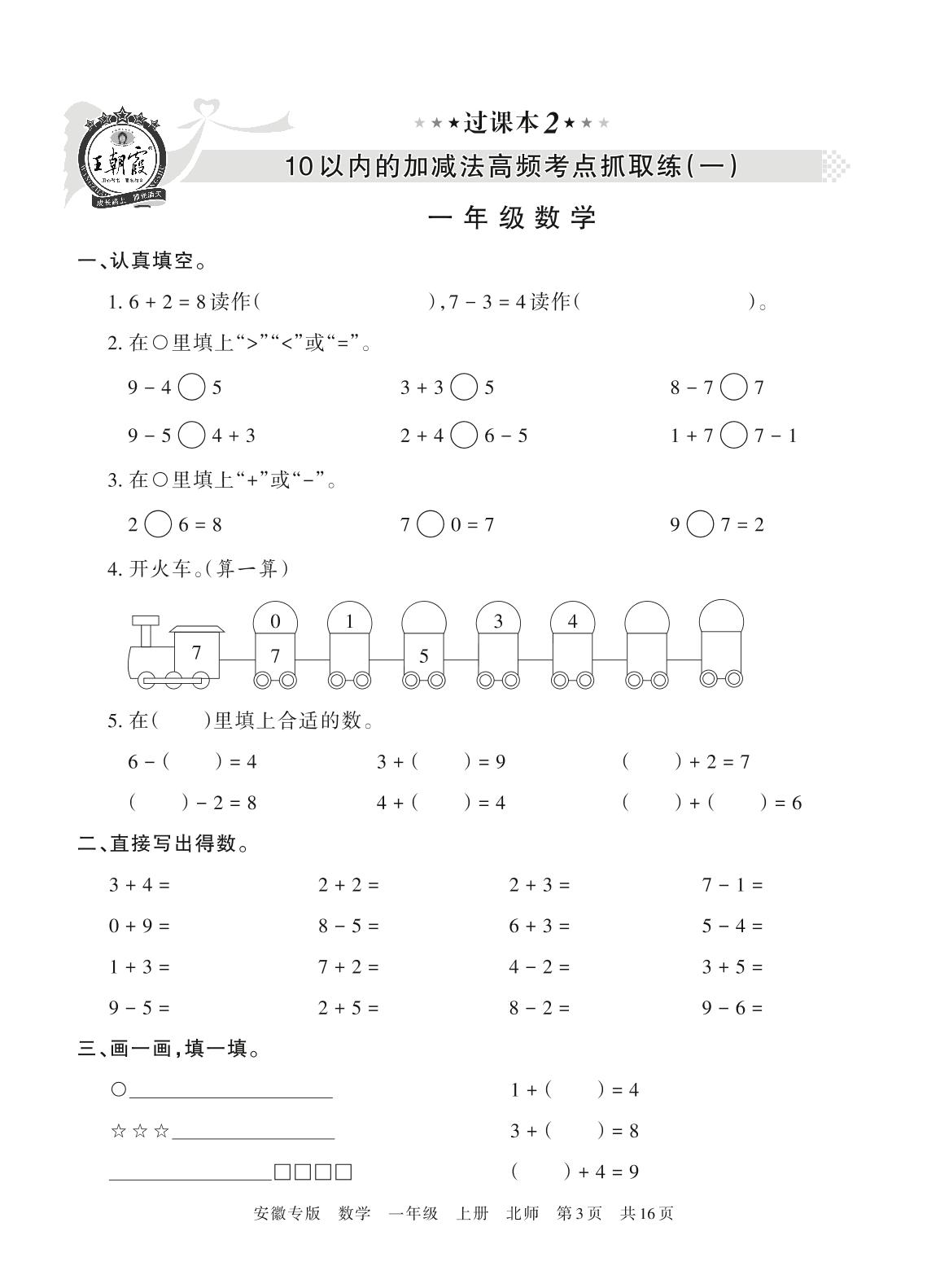 王朝霞期末过课本——10以内的加减法高频考点抓取练(一)一年级上册数学(北师版)【2】