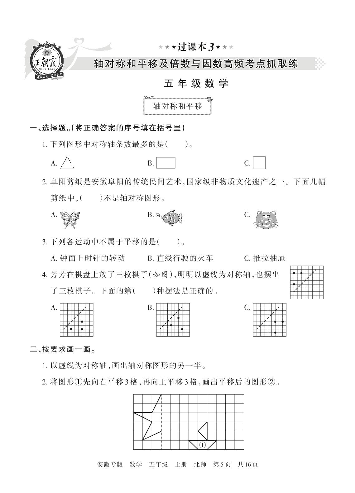 王朝霞期末过课本——轴对称和平移及倍数与因数高频考点抓取练五年级上册数学(北师版)【3】