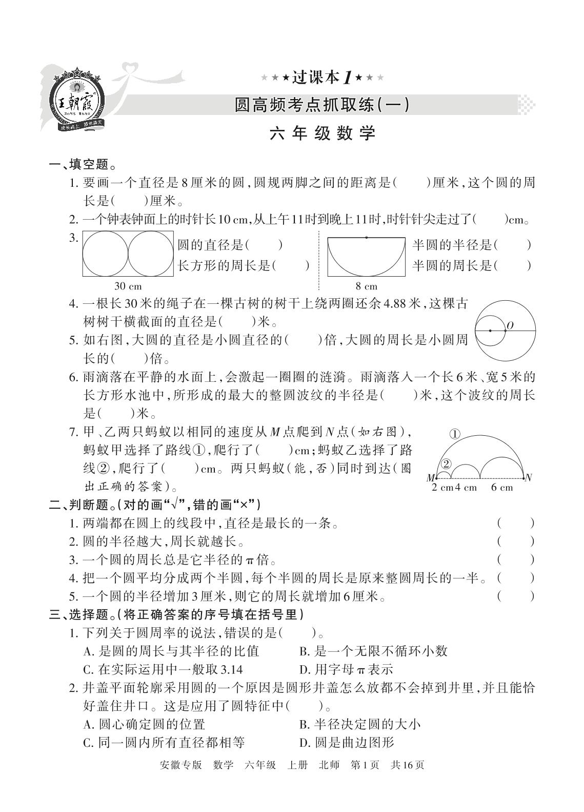 王朝霞期末过课本——圆高频考点抓取练(一)六年级上册数学(北师版)【1】