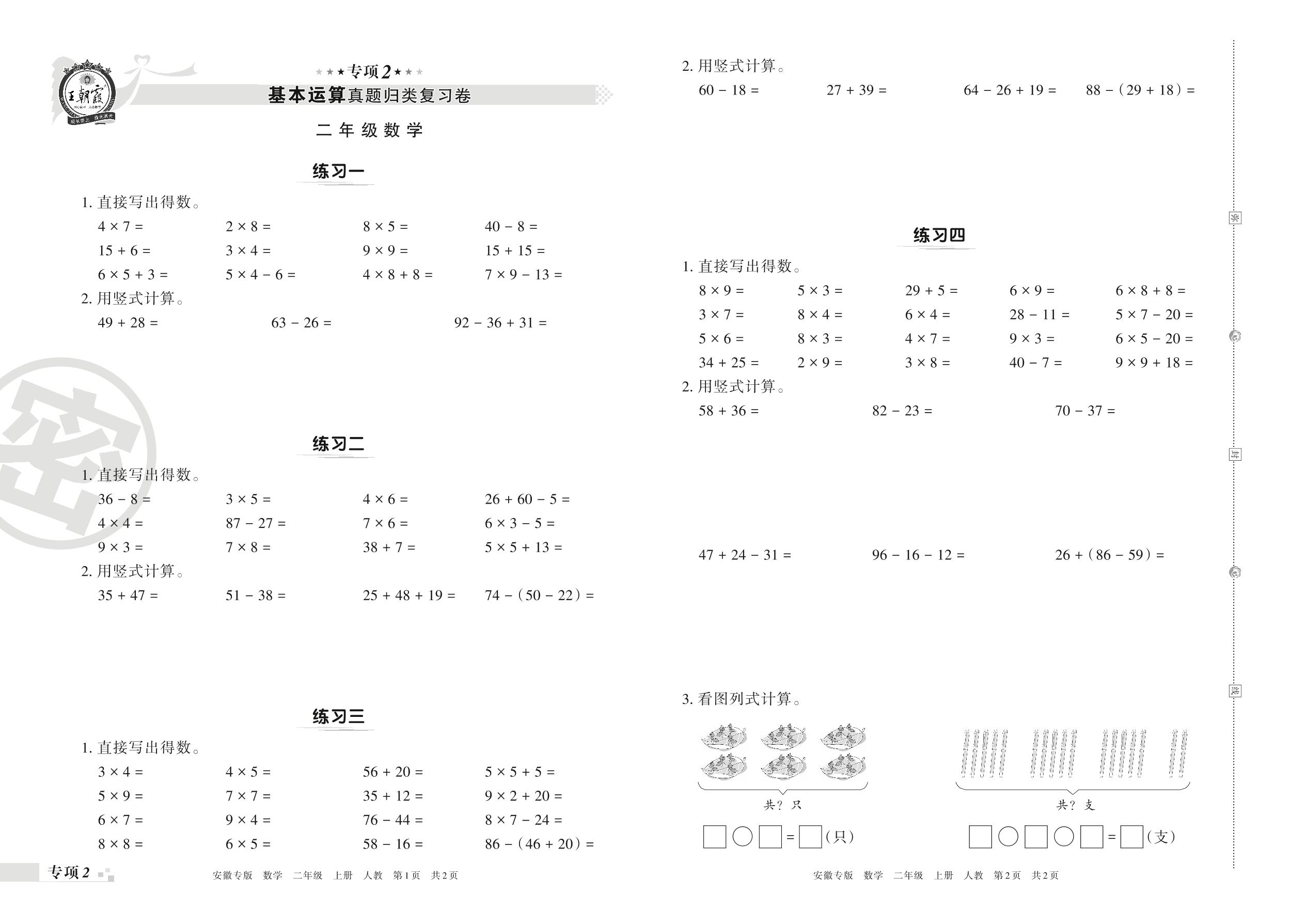 王朝霞期末专项卷——基本运算真题归类复习二年级上册数学(人教版)【2】