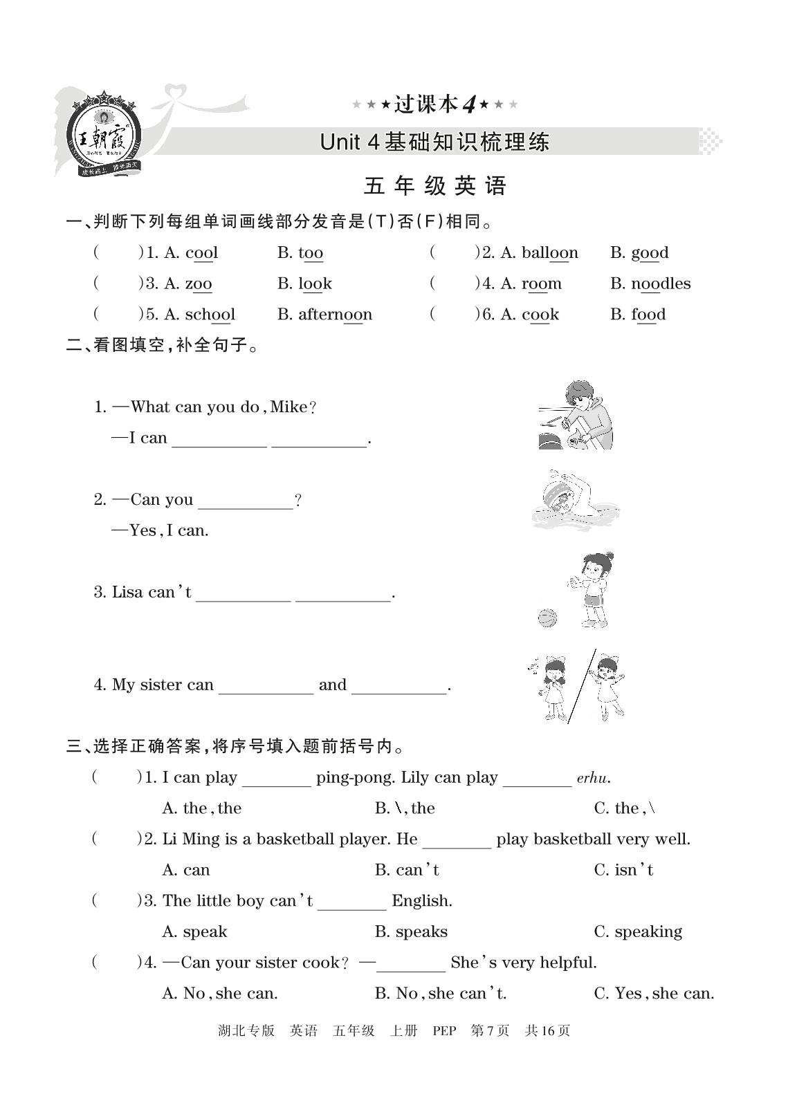 王朝霞期末过课本——Unit 4基础知识梳理练五年级上册英语(人教PEP版)【4】