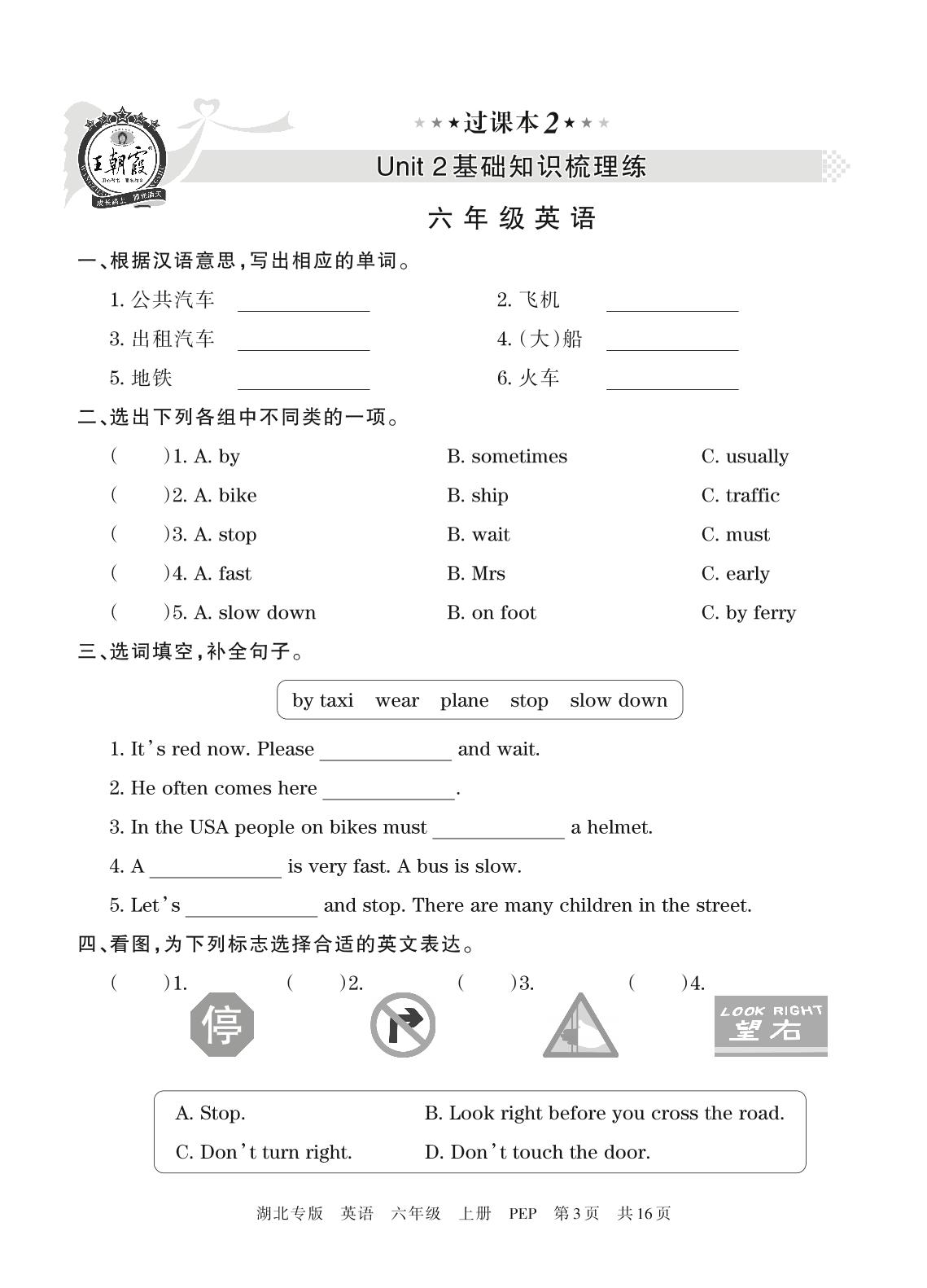 王朝霞期末过课本——Unit 2基础知识梳理练六年级上册英语(人教PEP版)【2】