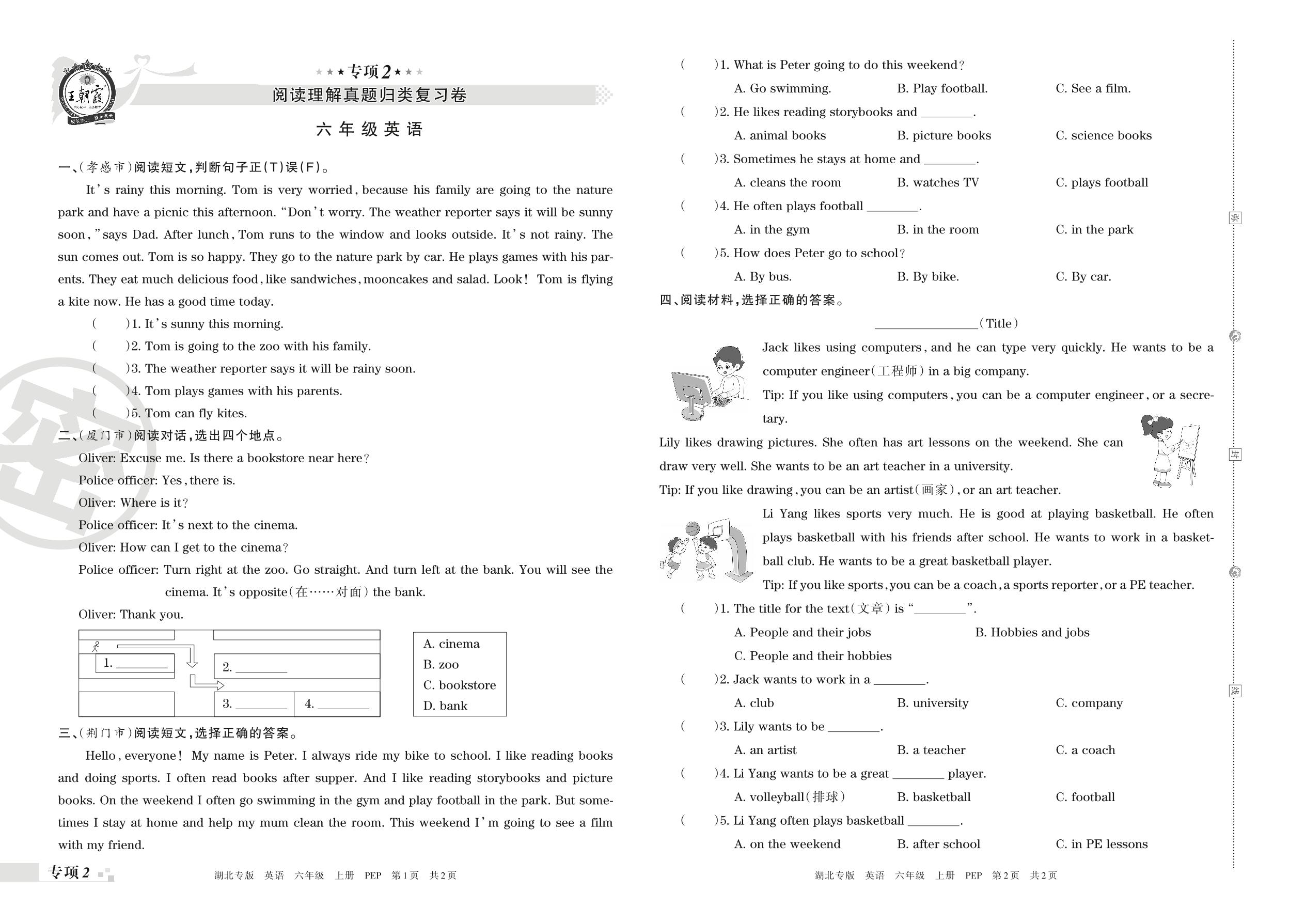 王朝霞期末专项卷——阅读理解真题归类复习卷六年级上册英语(人教PEP版)【2】