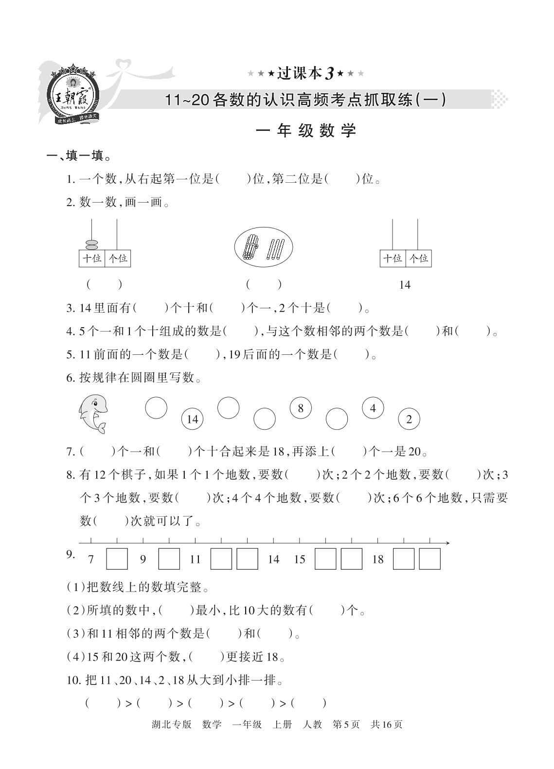 王朝霞期末过课本——11~20各数的认识高频考点抓取练(一)一年级上册数学人教版【3】