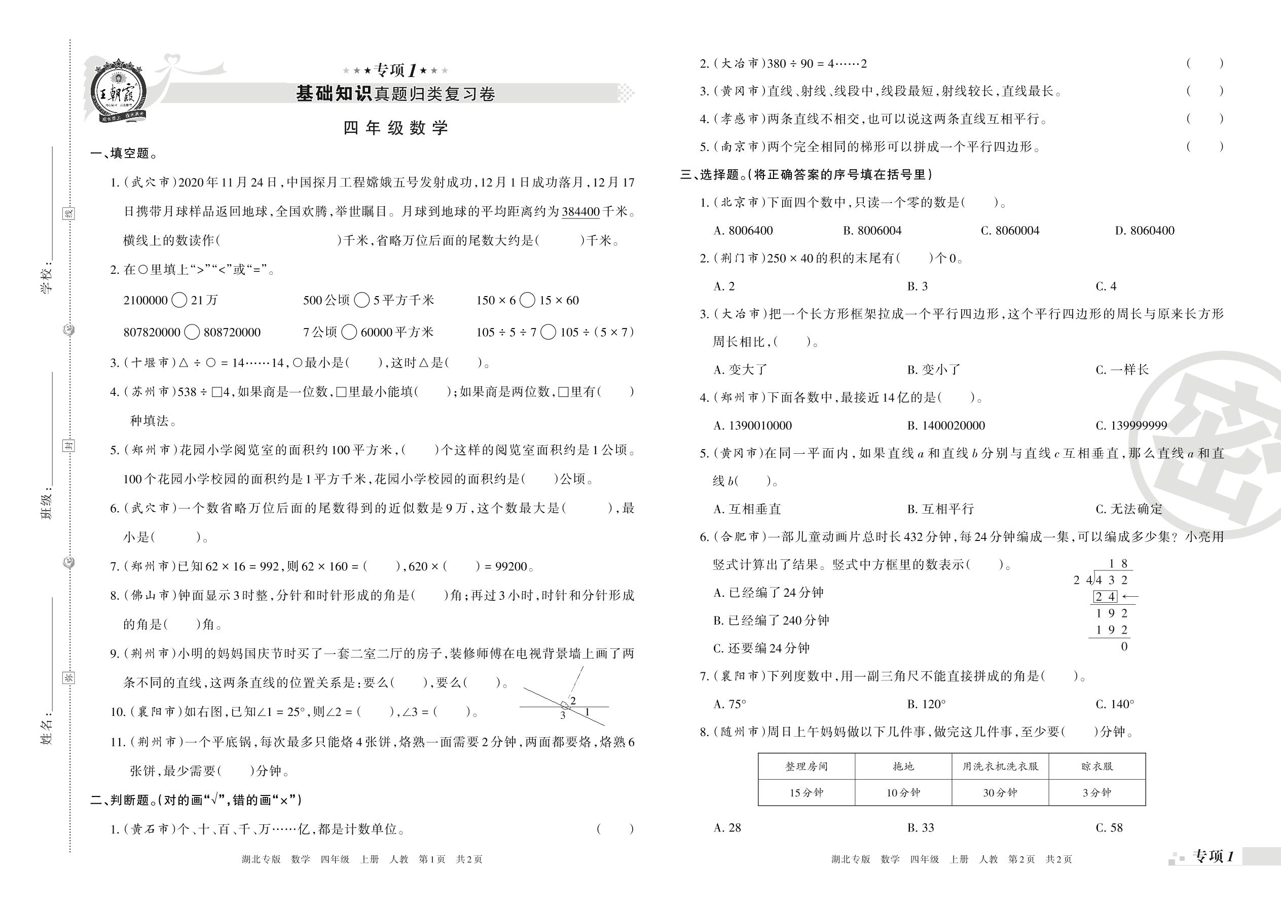 王朝霞期末专项卷——基础知识真题归类复习卷四年级上册数学人教版【1】