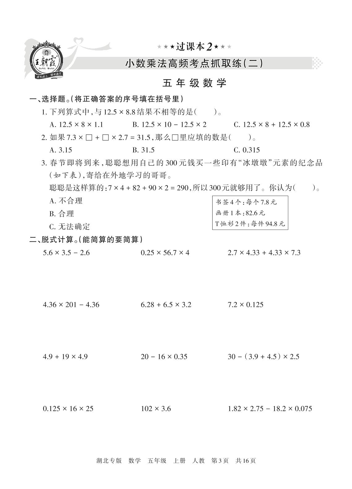 王朝霞期末过课本——小数乘法高频考点抓取练(二)五年级上册数学人教版【2】