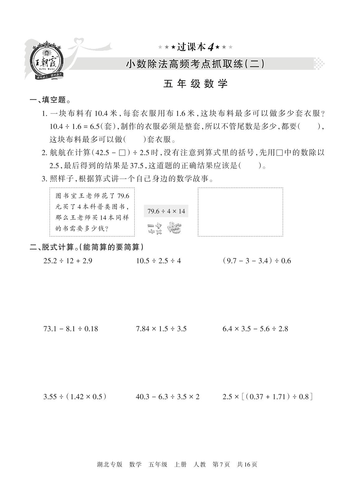 王朝霞期末过课本——小数除法高频考点抓取练(二)五年级上册数学人教版【4】