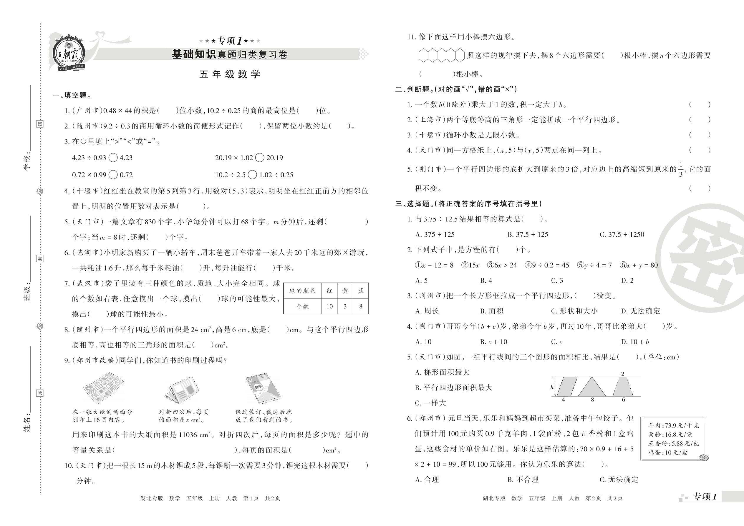 王朝霞期末专项卷——基础知识真题归类复习卷五年级上册数学人教版【1】