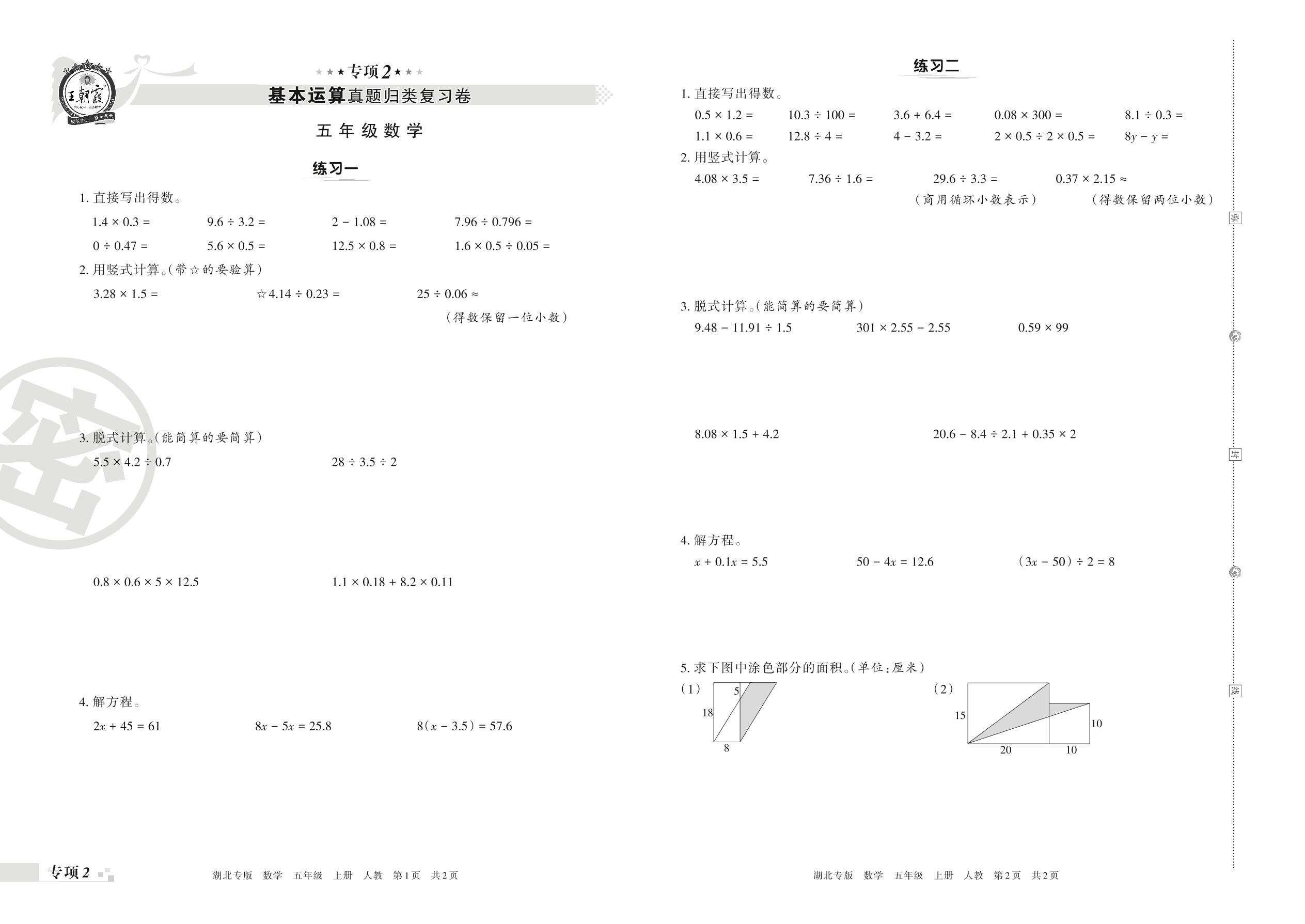 王朝霞期末专项卷——基本运算真题归类复习卷五年级上册数学人教版【2】