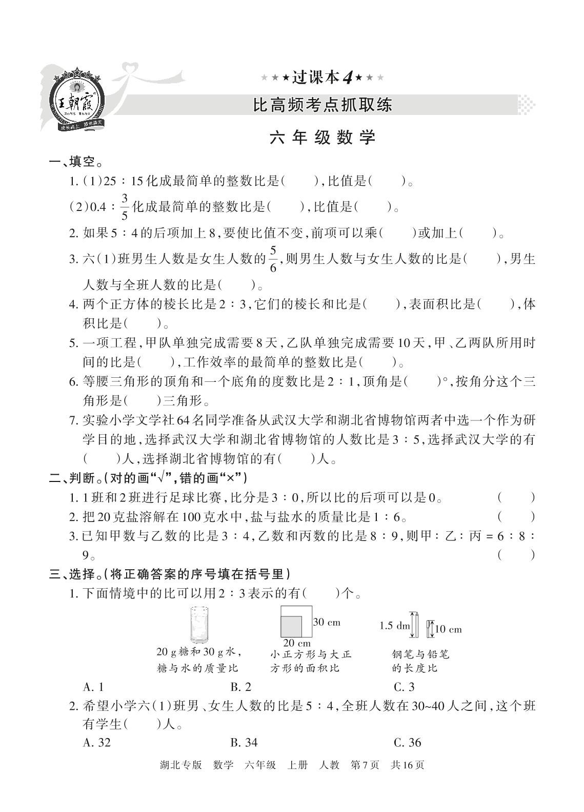 王朝霞期末过课本——比高频考点抓取练六年级上册数学人教版【4】