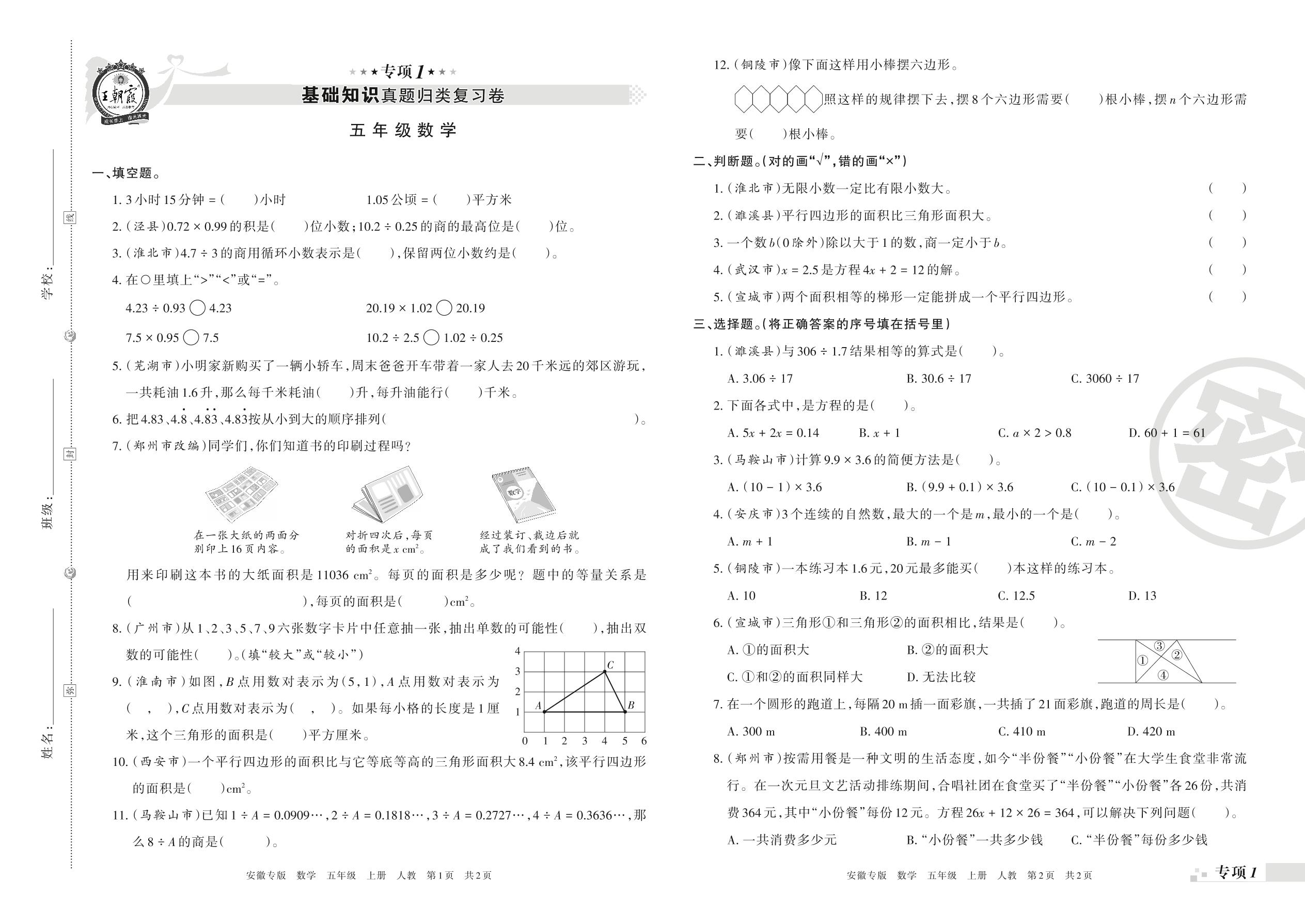 王朝霞期末专项卷——基础知识真题归类复习五年级上册数学(人教版)【1】