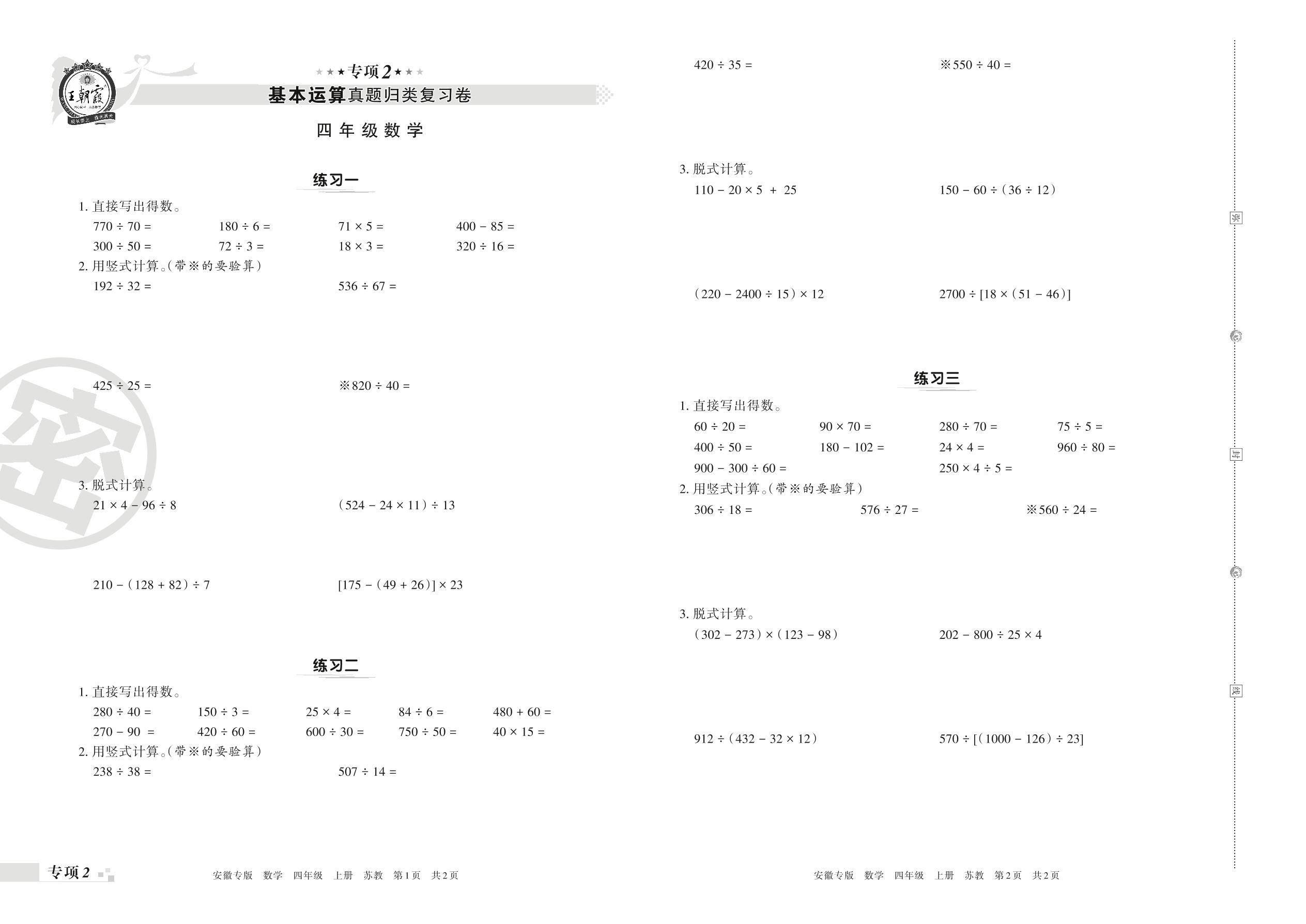 王朝霞期末专项卷——基本运算真题归类复习四年级上册数学(苏教版)【2】