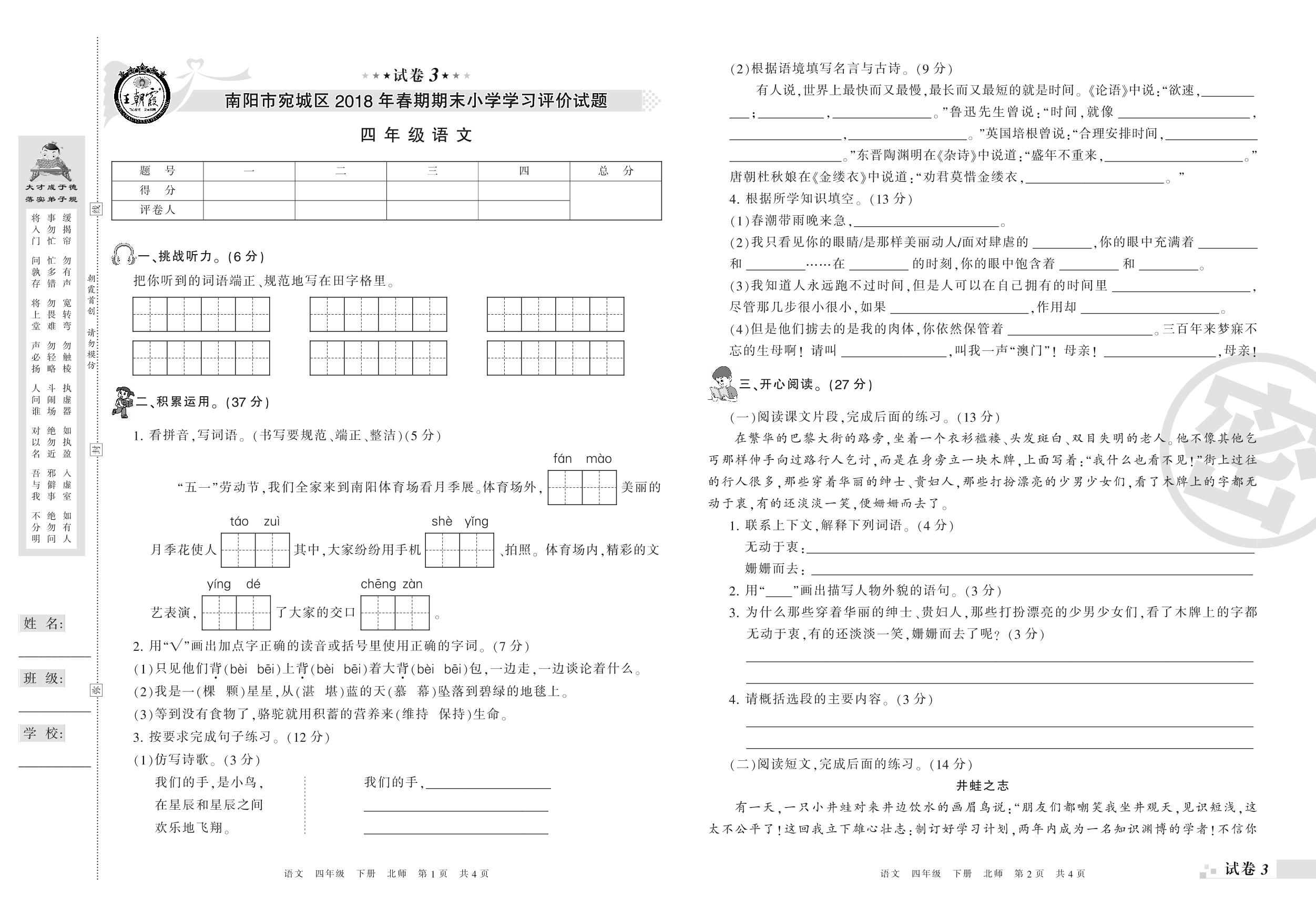 2017-2018学年第二学期南阳市宛城区四年级语文试卷(北师版)【3】