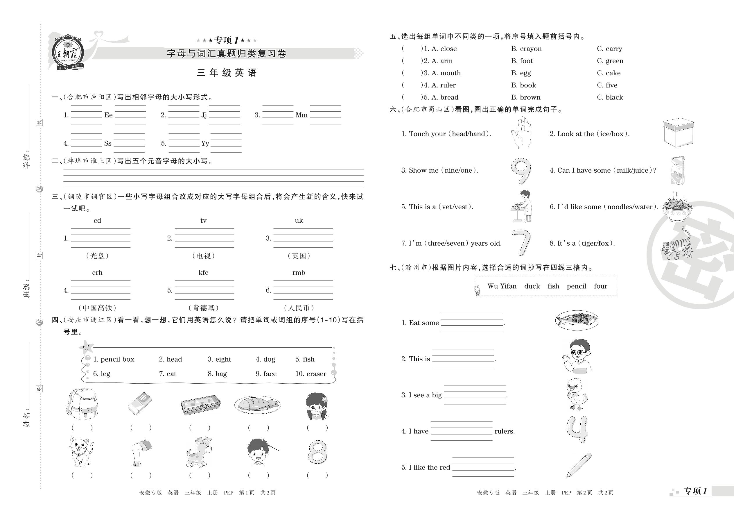 王朝霞期末专项卷——字母与词汇真题归类复习卷三年级上册英语(人教PEP版)_R211112102252161【1】