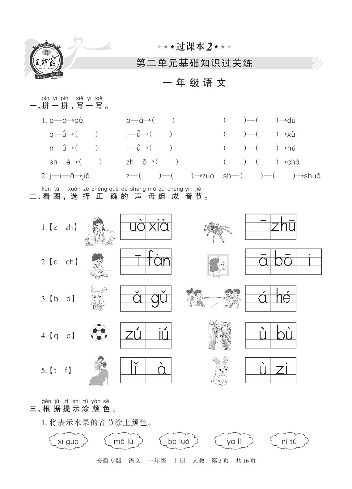 王朝霞期末过课本——第二单元基础知识过关练一年级上册语文(人教版)_R211112103147754【2】