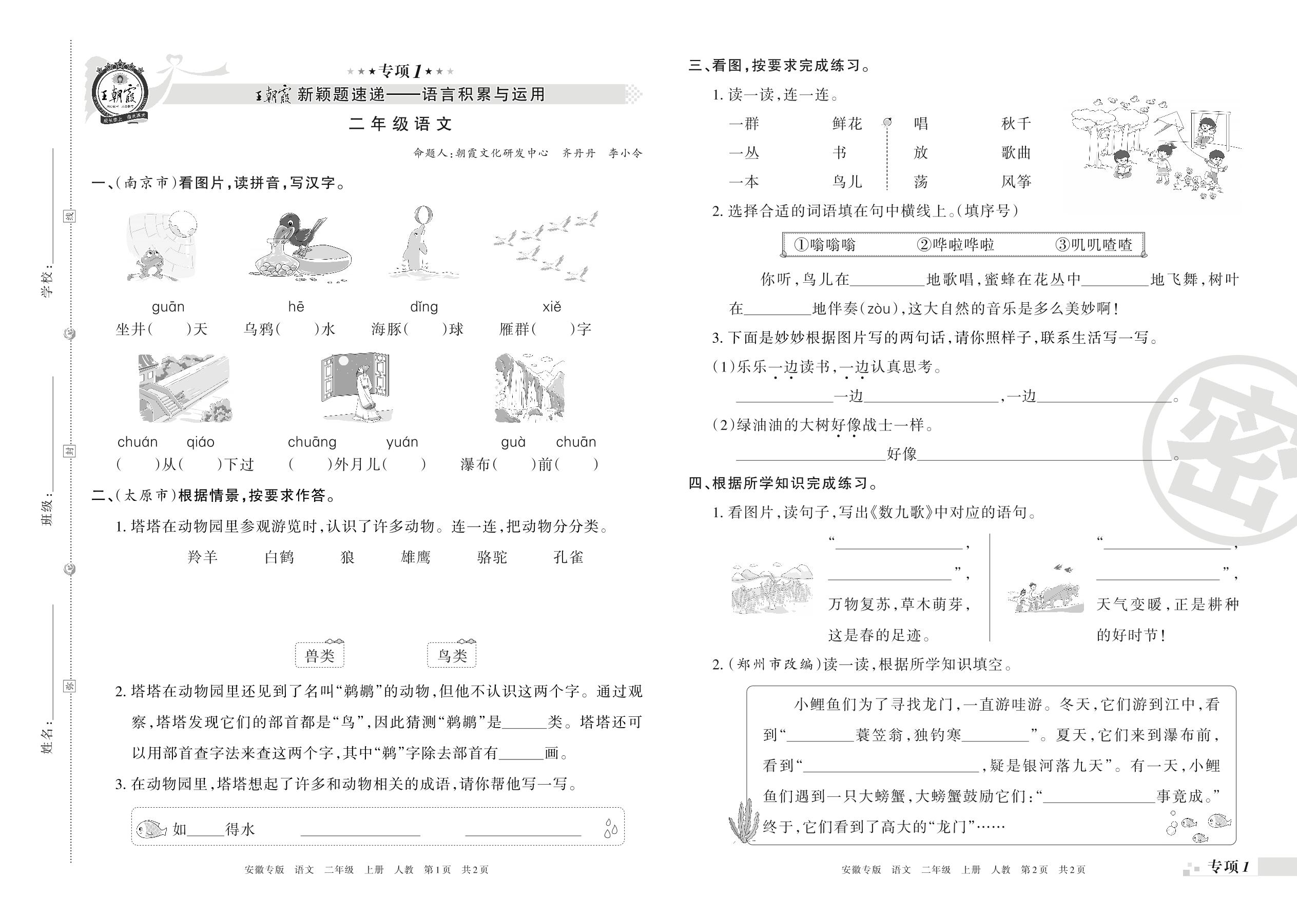 王朝霞期末专项卷——新颖题速递:语言积累与运用二年级上册语文(人教版)_R211112103519455【1】