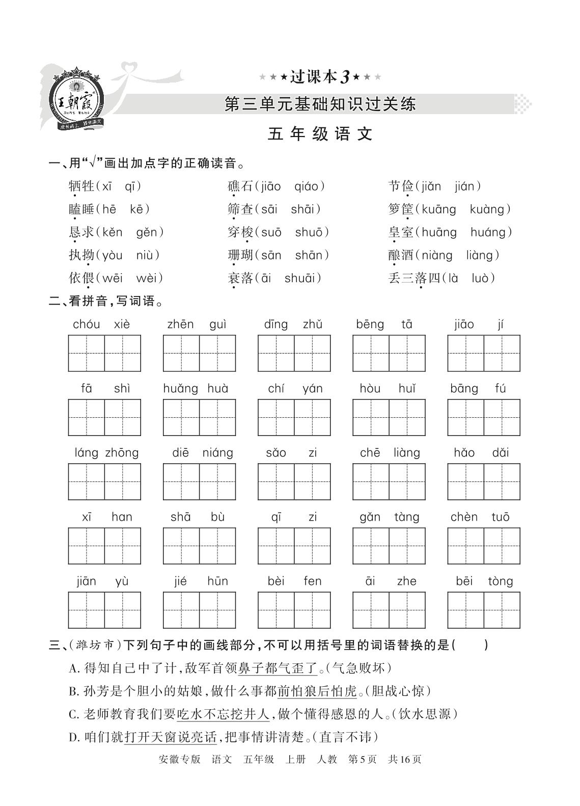 王朝霞期末过课本——第三单元基础知识过关练五年级上册语文(人教版)_R211112105759880【3】
