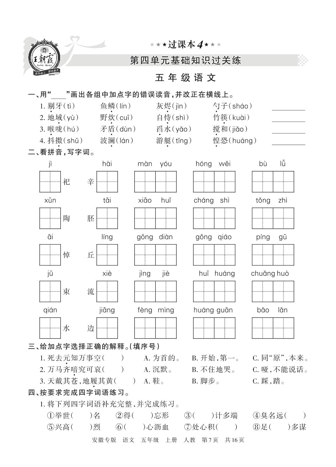 王朝霞期末过课本——第四单元基础知识过关练五年级上册语文(人教版)_R211112105759207【4】