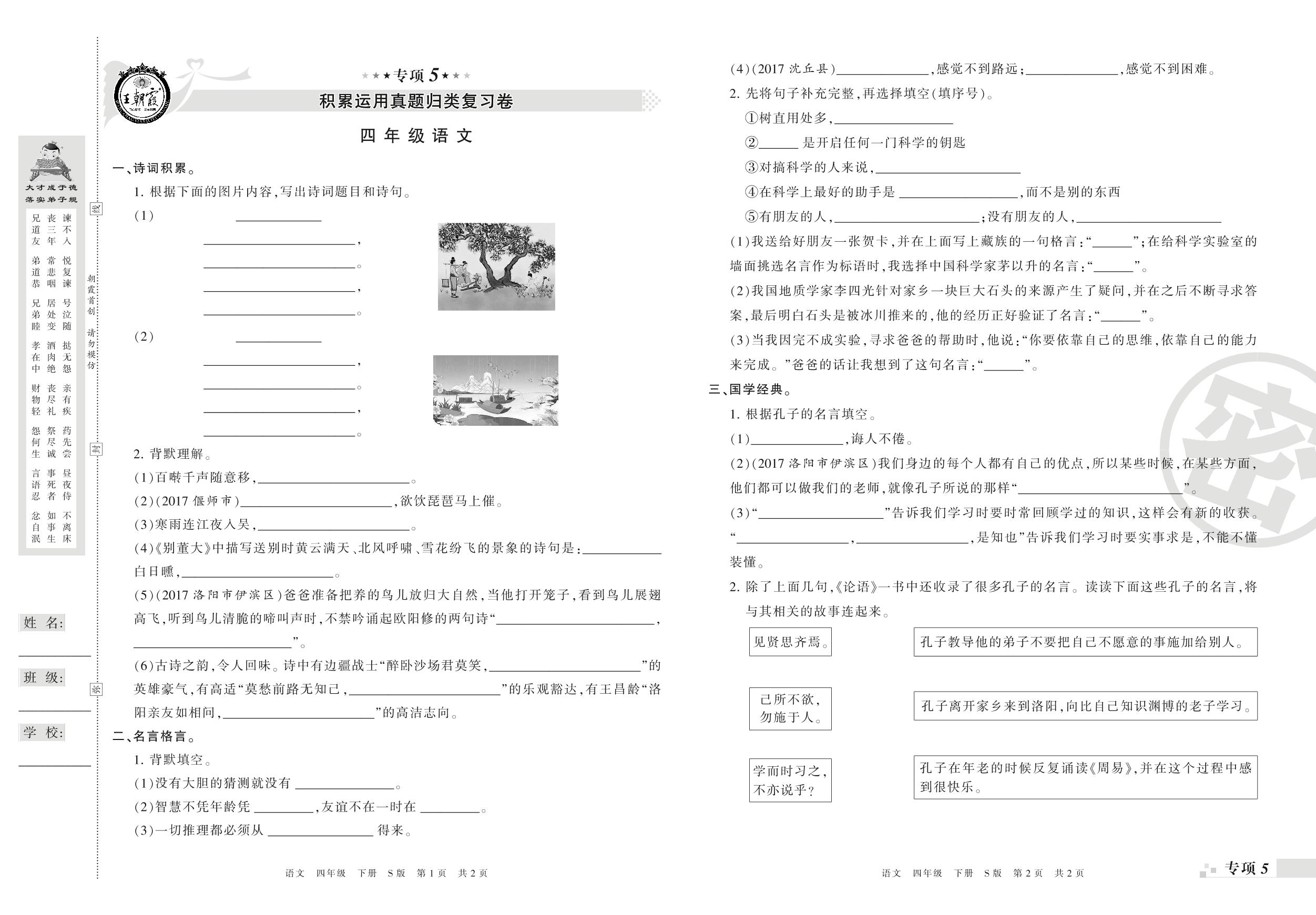 王朝霞期末专项卷——积累运用、课内阅读真题归类复习四年级下册语文(S版)_R210801202018【0】