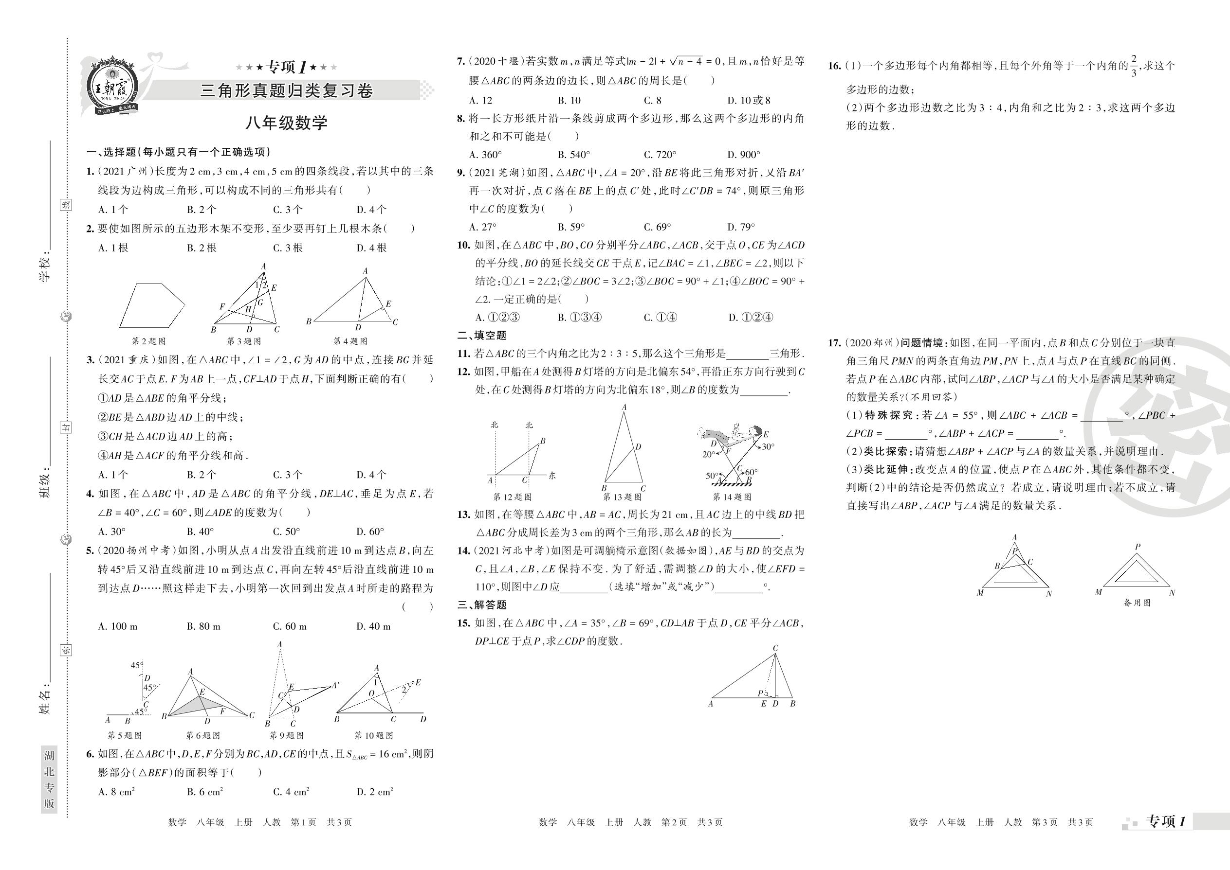 王朝霞期末专项卷——三角形真题归类复习卷八年级上册数学(人教版)【1】