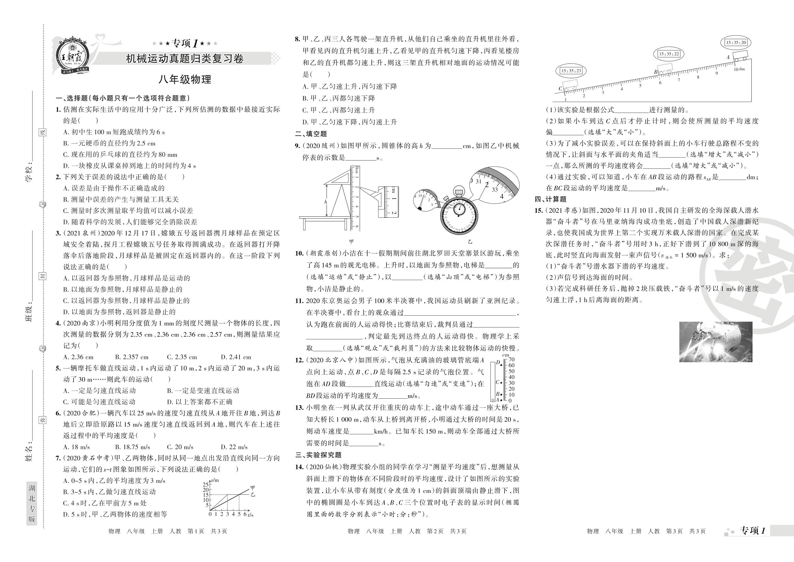 王朝霞期末专项卷——机械运动真题归类复习卷八年级上册物理(人教版)【1】