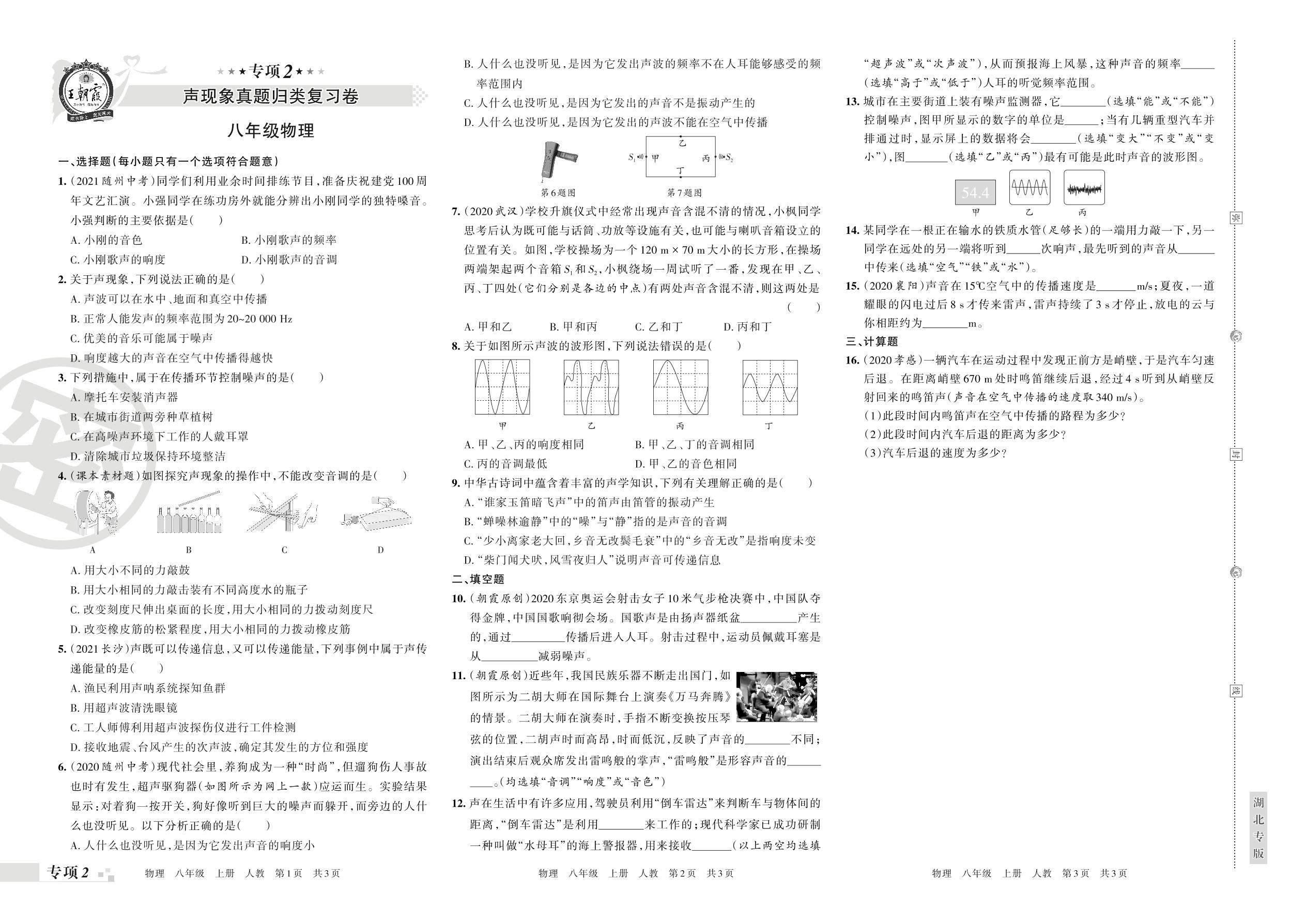 王朝霞期末专项卷——声现象真题归类复习卷八年级上册物理(人教版)【2】