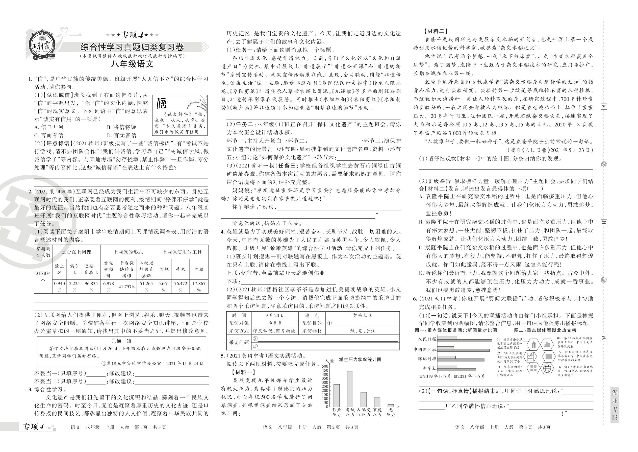 王朝霞期末专项卷——综合性学习真题归类复习卷八年级上册语文(人教版)【4】