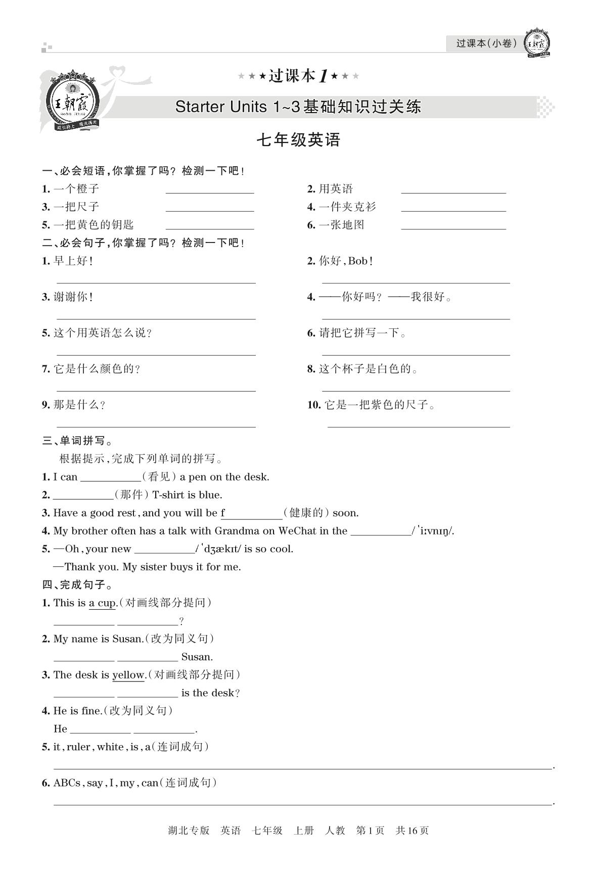 王朝霞期末过课本——Starter Units 1~3基础知识过关练七年级上册英语(人教版)【1】