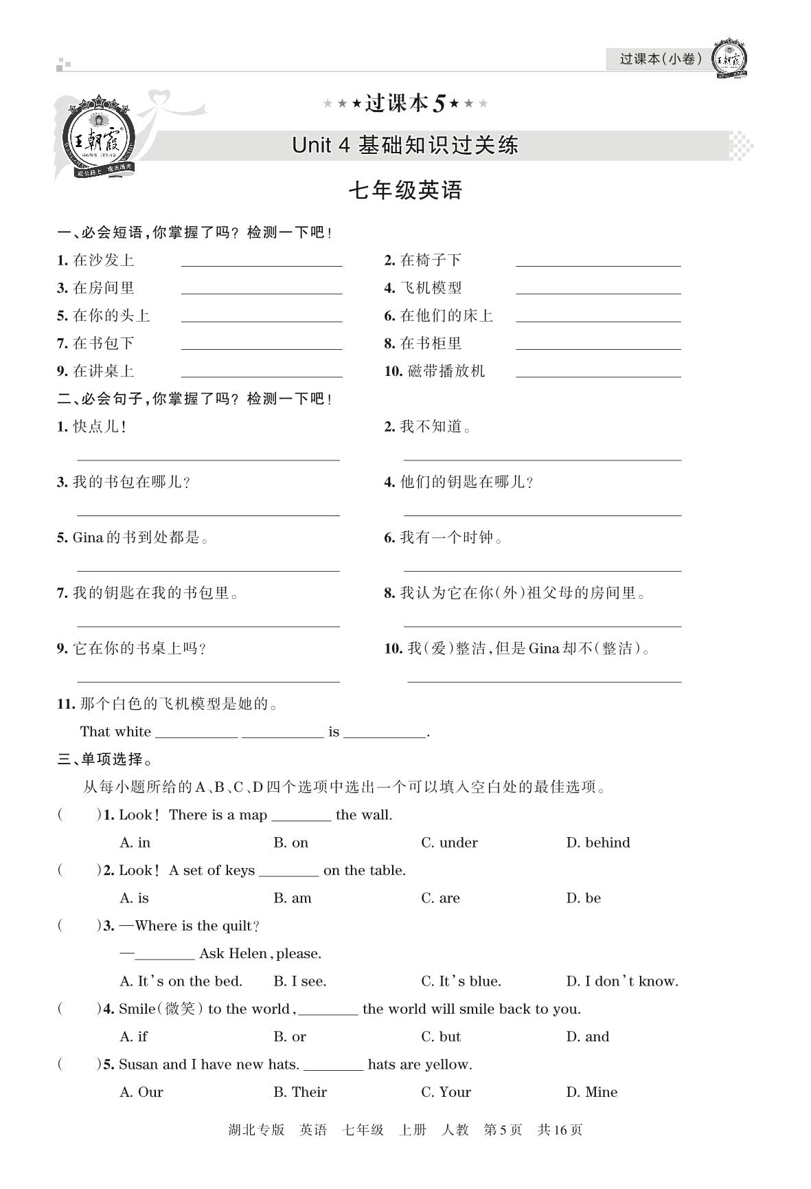 王朝霞期末过课本——Unit 4 基础知识过关练七年级上册英语(人教版)【5】