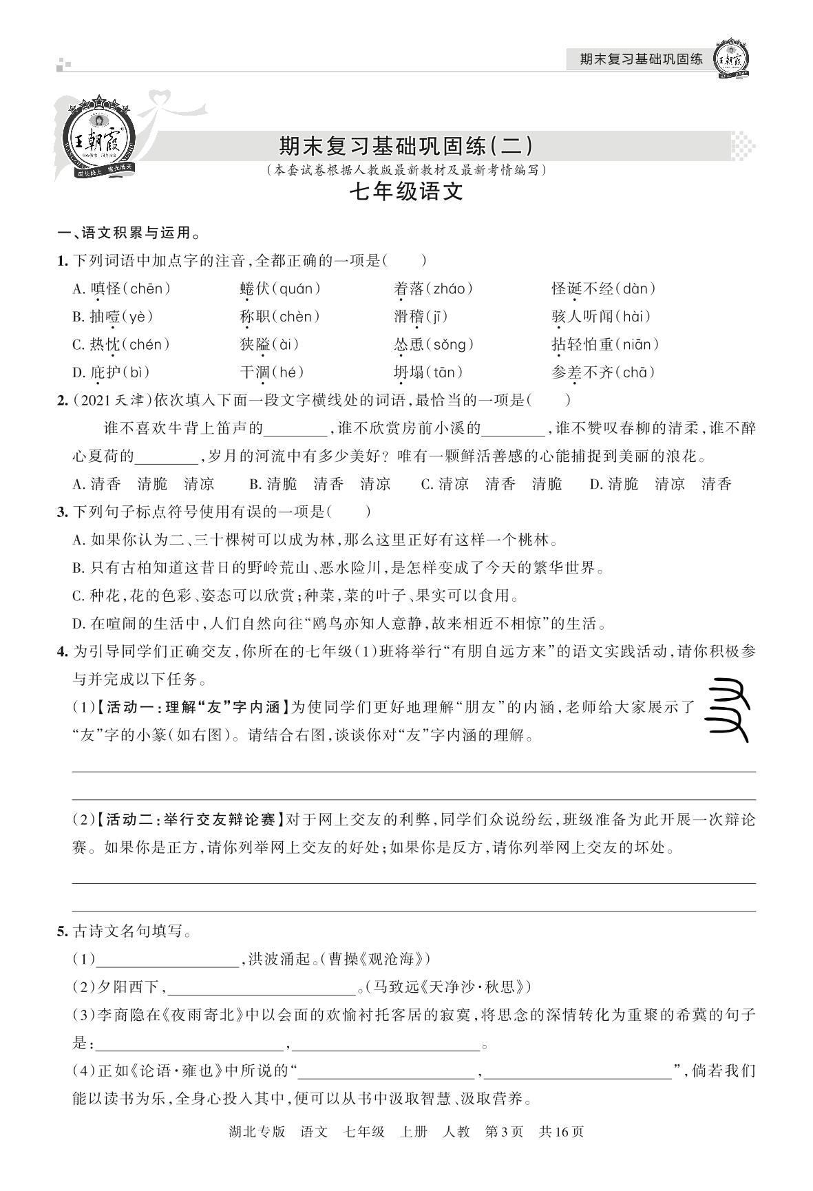 王朝霞期末小卷——期末复习基础巩固练(二)七年级上册语文(人教版)【2】