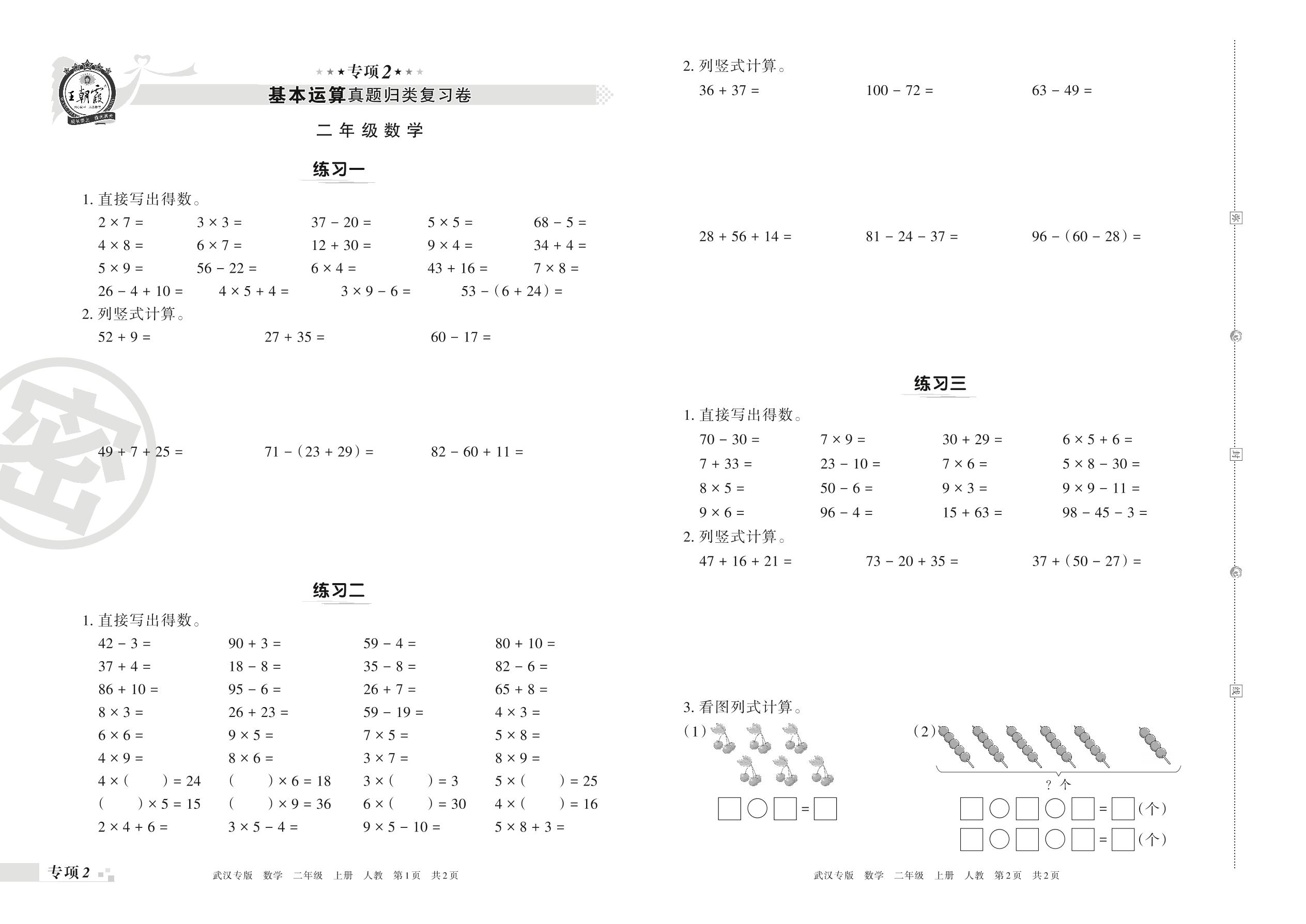 王朝霞期末专项卷——基本运算真题归类复习卷二年级上册数学(人教版)【2】